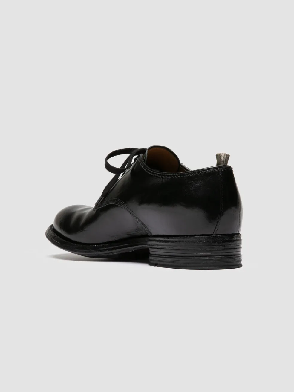 With a unique tanning process and a deep black hue, the Admiral 001 leather derbies redefine classic elegance. Handmade in Italy, the bold design and the double injection sole offer a robust appearance and durability.