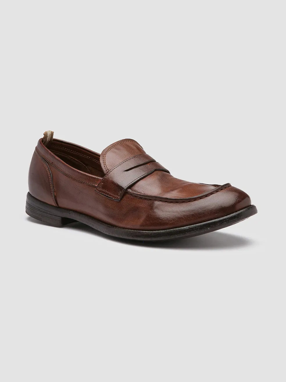 Arc penny loafers’ timeless silhouette highlights their craftsmanship and airbrushed finish in shades of brown. Crafted from premium quality leather they feature a rounded almond toe silhouette our signature grosgrain heel pull tab and a sturdy caoutchouc sole with a stacked heel.