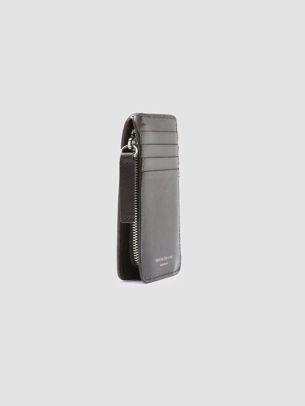 A flawless handcrafted design distinguishes our Bergé card holder in fine dark brown woven and smooth leather. Embellished by the lettering logo embossed at the front tab it has four card slots at the back with gold-tone logo lettering print and a silver-tone metal zipped compartment.