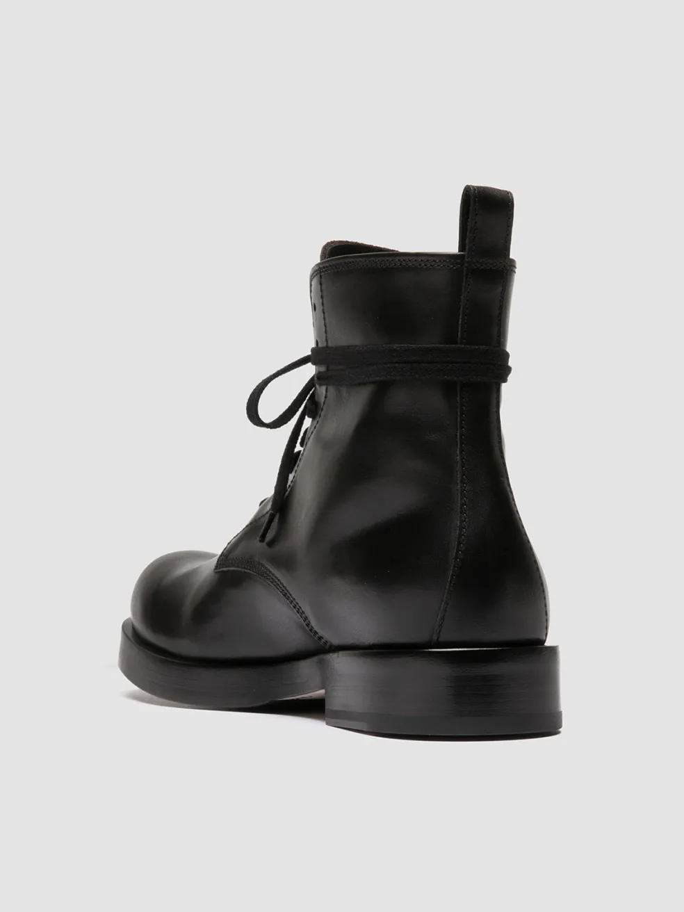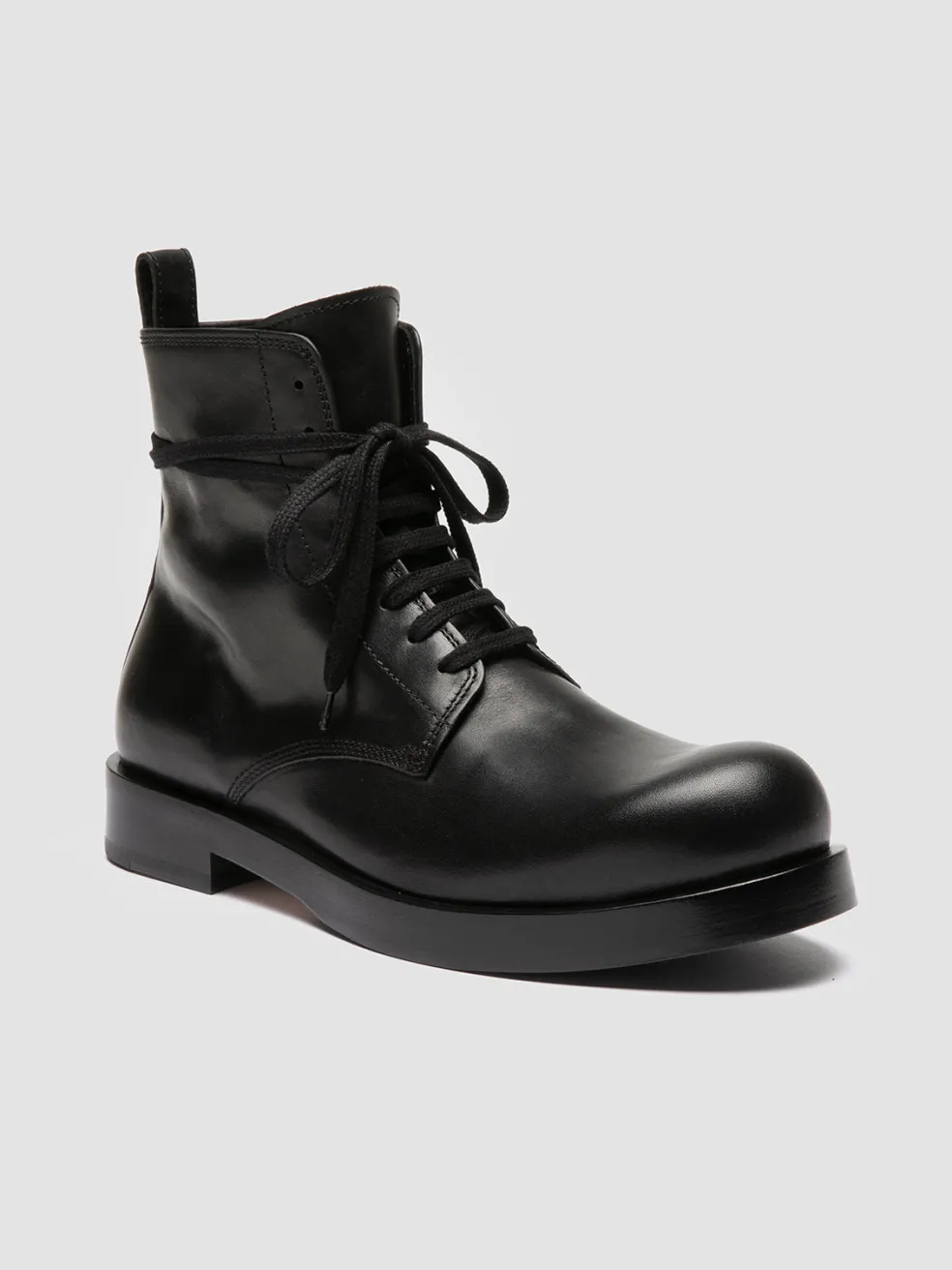 With a contemporary gothic allure, the Bulla 002 boots are handcrafted in Italy from premium black leather, featuring a polished lace-up upper that merges seamlessly with a rubber-injected sole for resilient wearability.