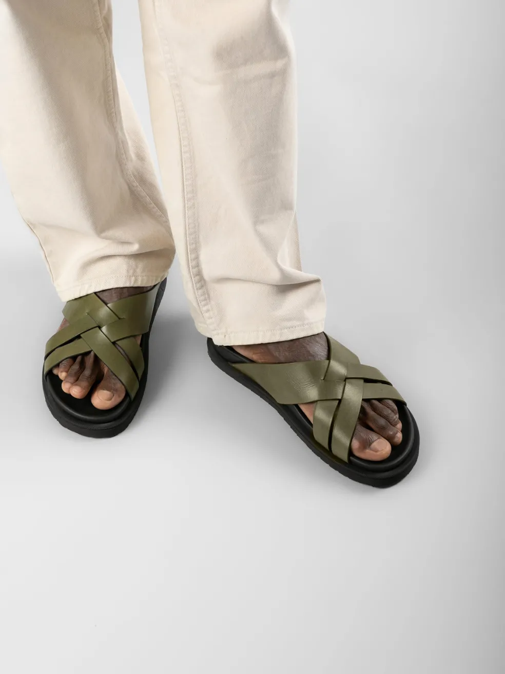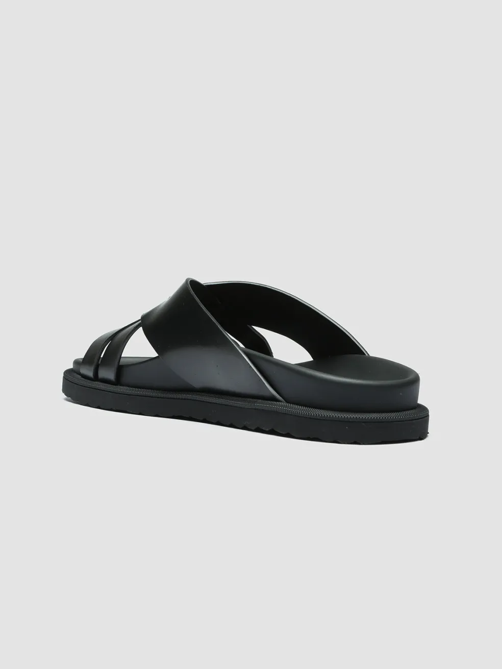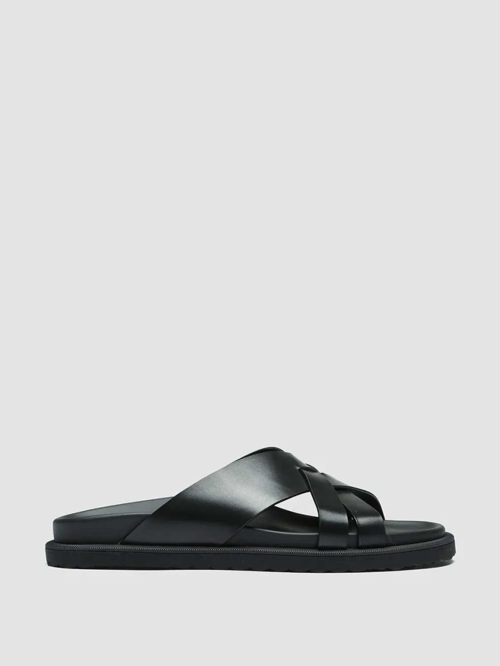 Easy to combine and wear, our Charrat slides are handcrafted from fine black smooth leather. They reveal an elegantly crossed strap band, round toe, molded insole and a flat natural rubber sole with a non-slip bottom.