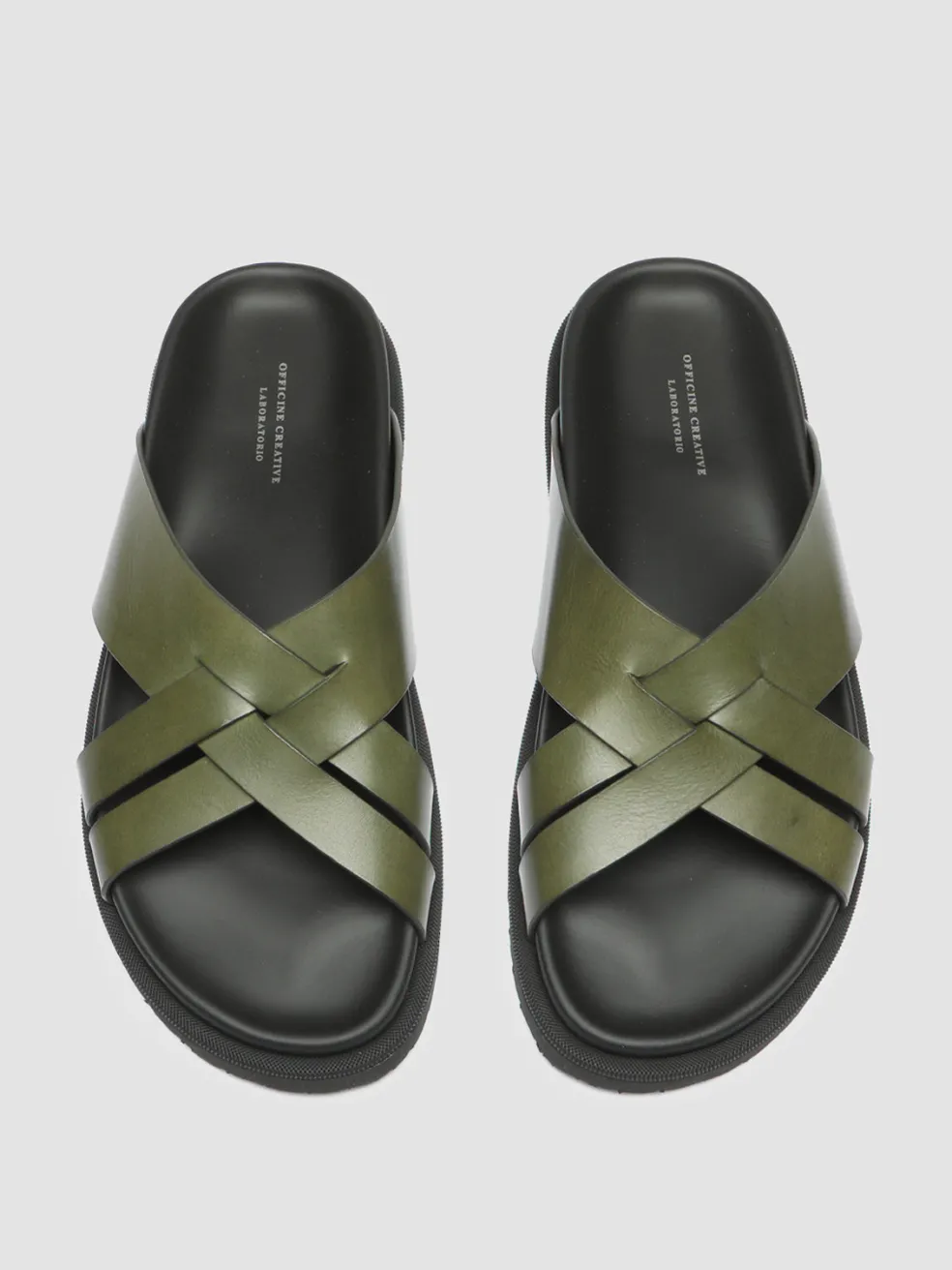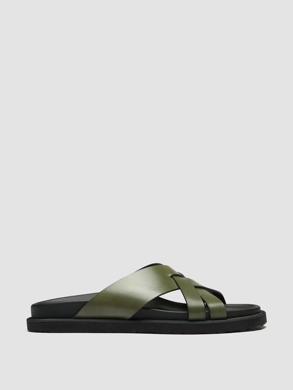 Easy to combine and wear, our Charrat slides are handcrafted from fine green smooth leather. They reveal an elegantly crossed strap band, round toe, molded insole and a flat natural rubber sole with a non-slip bottom.