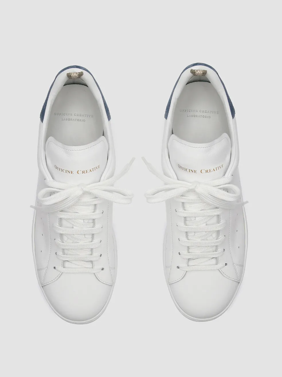 Versatile and truly comfortable our Mower sneakers are handcrafted from premium white leather and marked by a back patch in blue suede with gold-tone lettering logo. They set on a lightweight rubber sole and reveal logo at the tongue flat cotton laces and our signature grosgrain heel loop tab.