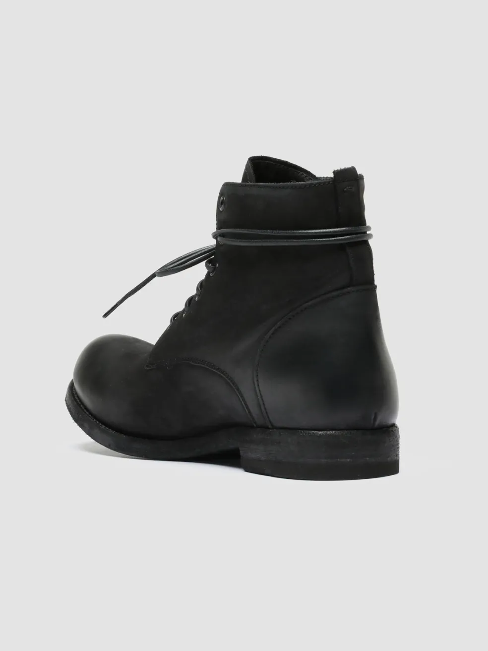 Our Bubble are the contemporary and artisanal reinterpretation of lace-up boots. The upper and the classic side inserts are made from black soft suede. They feature a rounded toe and a leather sole with a stacked heel and grip rubber inserts.