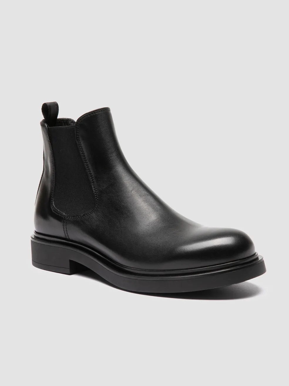 The Engineer 006 boots showcase a timeless Chelsea silhouette with elastic side panels, elevated by a sleek, polished finish. Handmade in Italy, they feature a robust construction in premium black leather and a rubber sole.