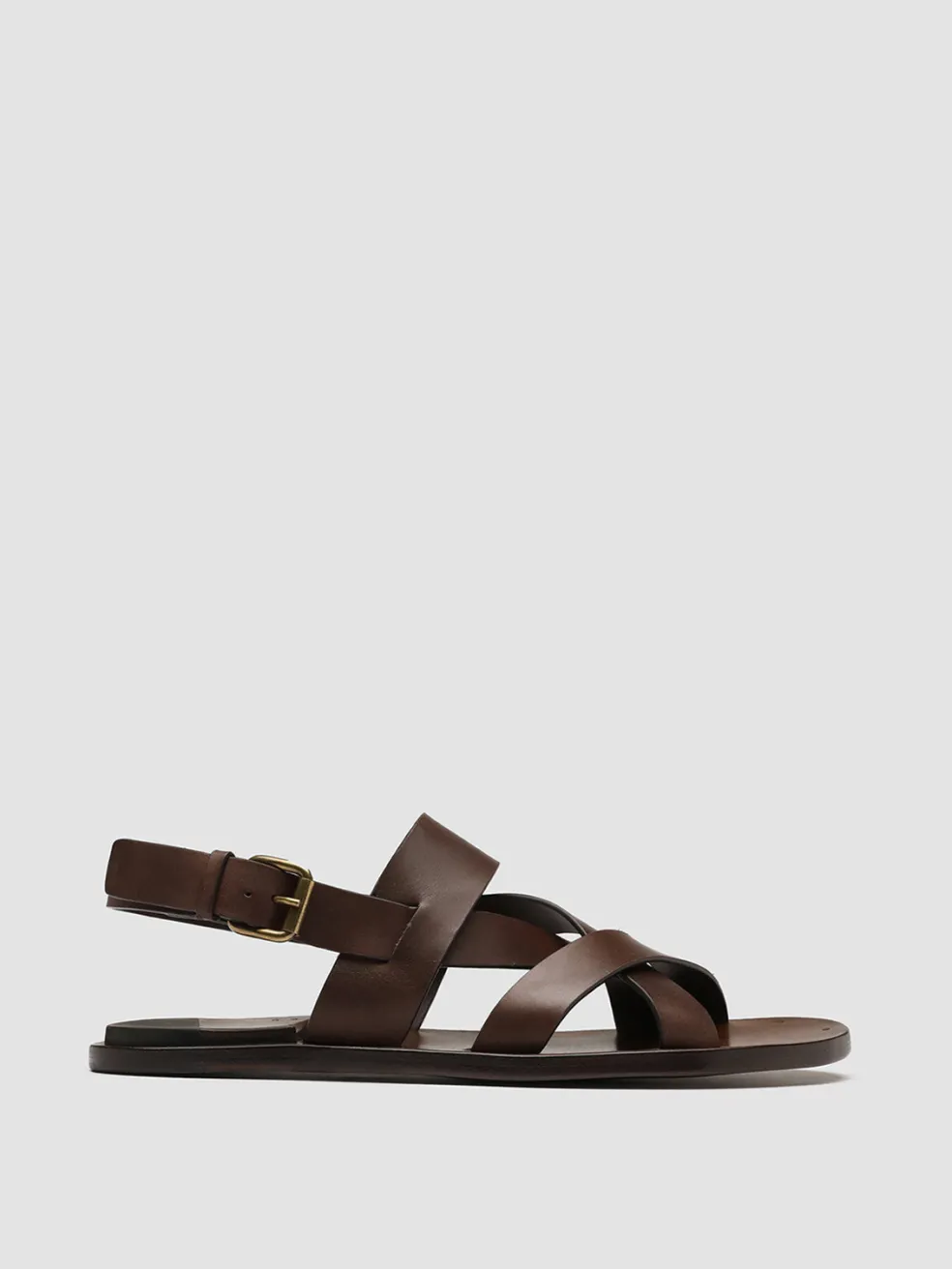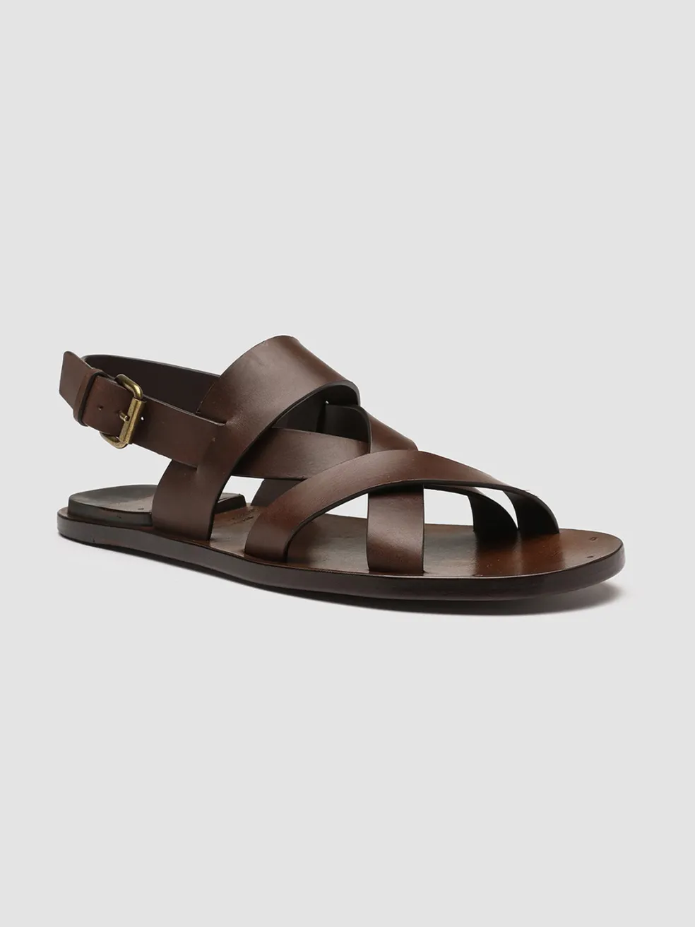 Expertly handcrafted from premium smooth leather in a brown shade our Kontraire sandals stand out thanks to the signature heel applied at the insole. They feature a criss-cross straps design an adjustable gold-tone metal buckle at the side a rounded toe and a flat leather sole.