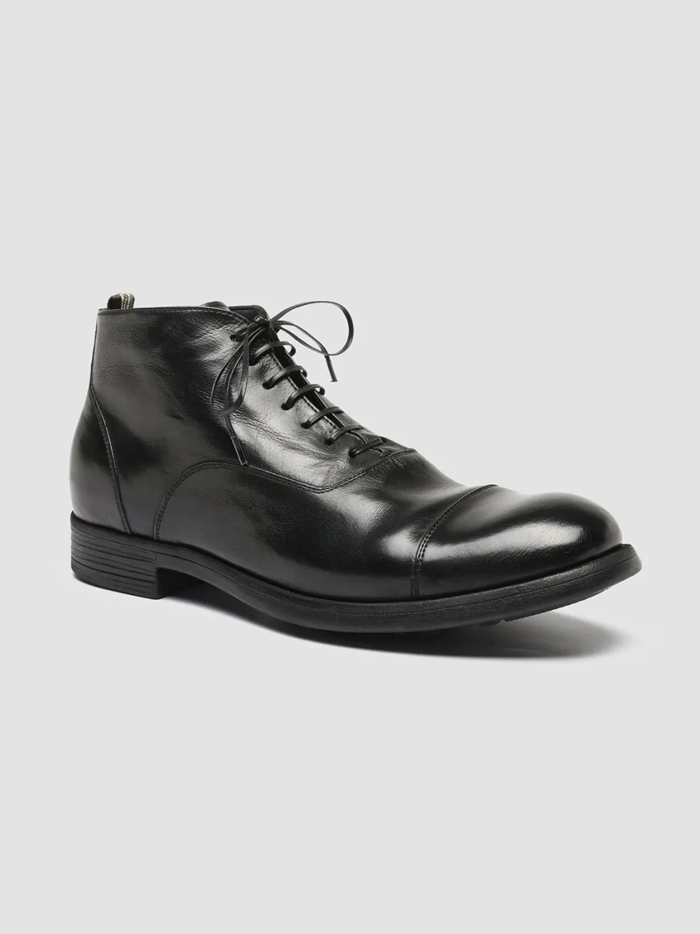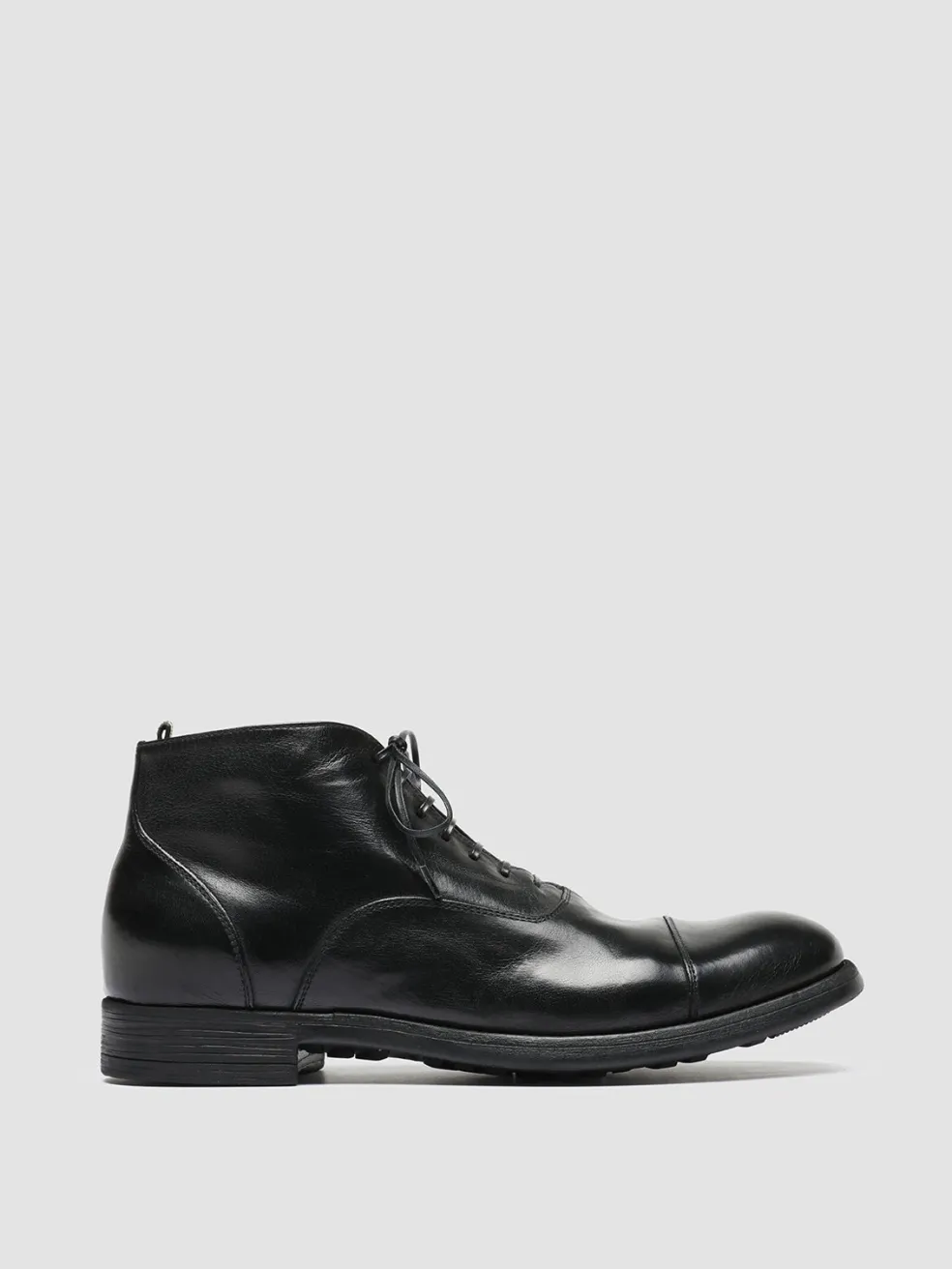 Smart and versatile, our Chronicle 057 boots will work just as well with formal trousers as they do with chinos and jeans. Handmade from glossy black leather, they rest on flexible rubber soles that enhance comfort and durability.