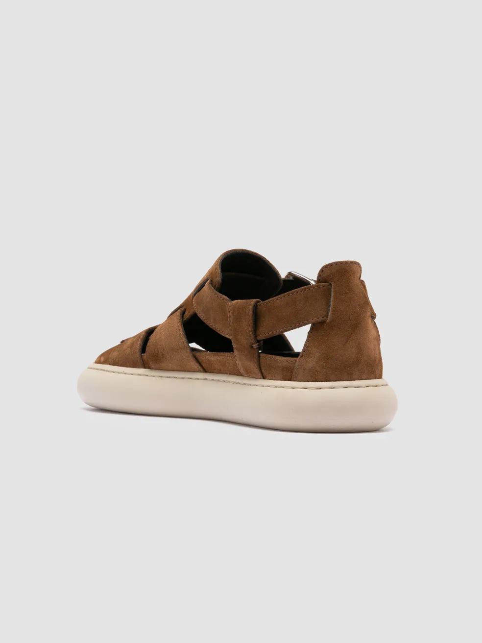 Handcrafted in Italy, the Dinghy 103 sandals in soft brown suede define casual comfort. The adjustable straps with elegant metallic buckles ensure a custom fit, while the chucky caoutchouc sole, both durable and natural, anchors the design, offering a contemporary twist on a relaxed silhouette.
