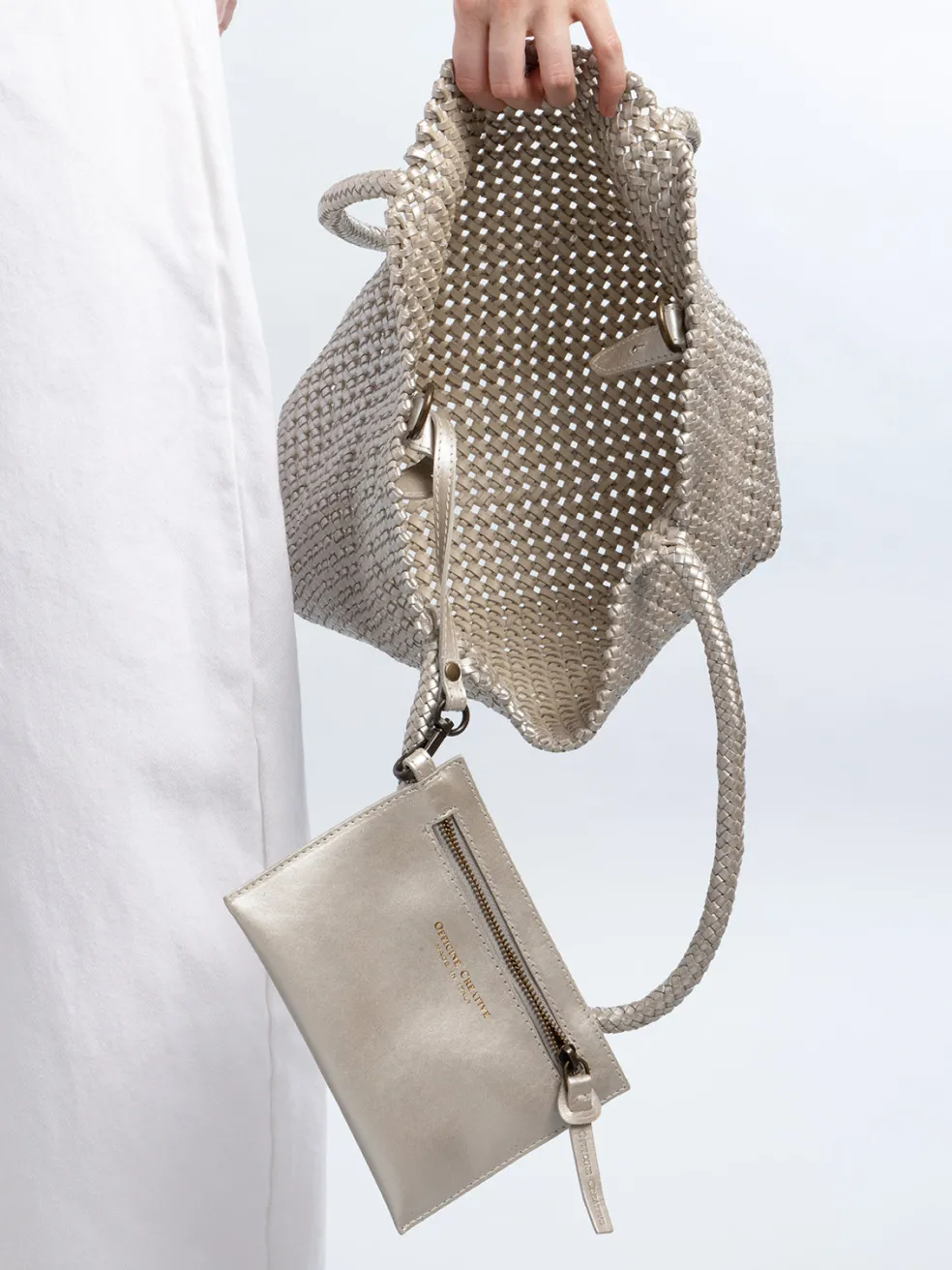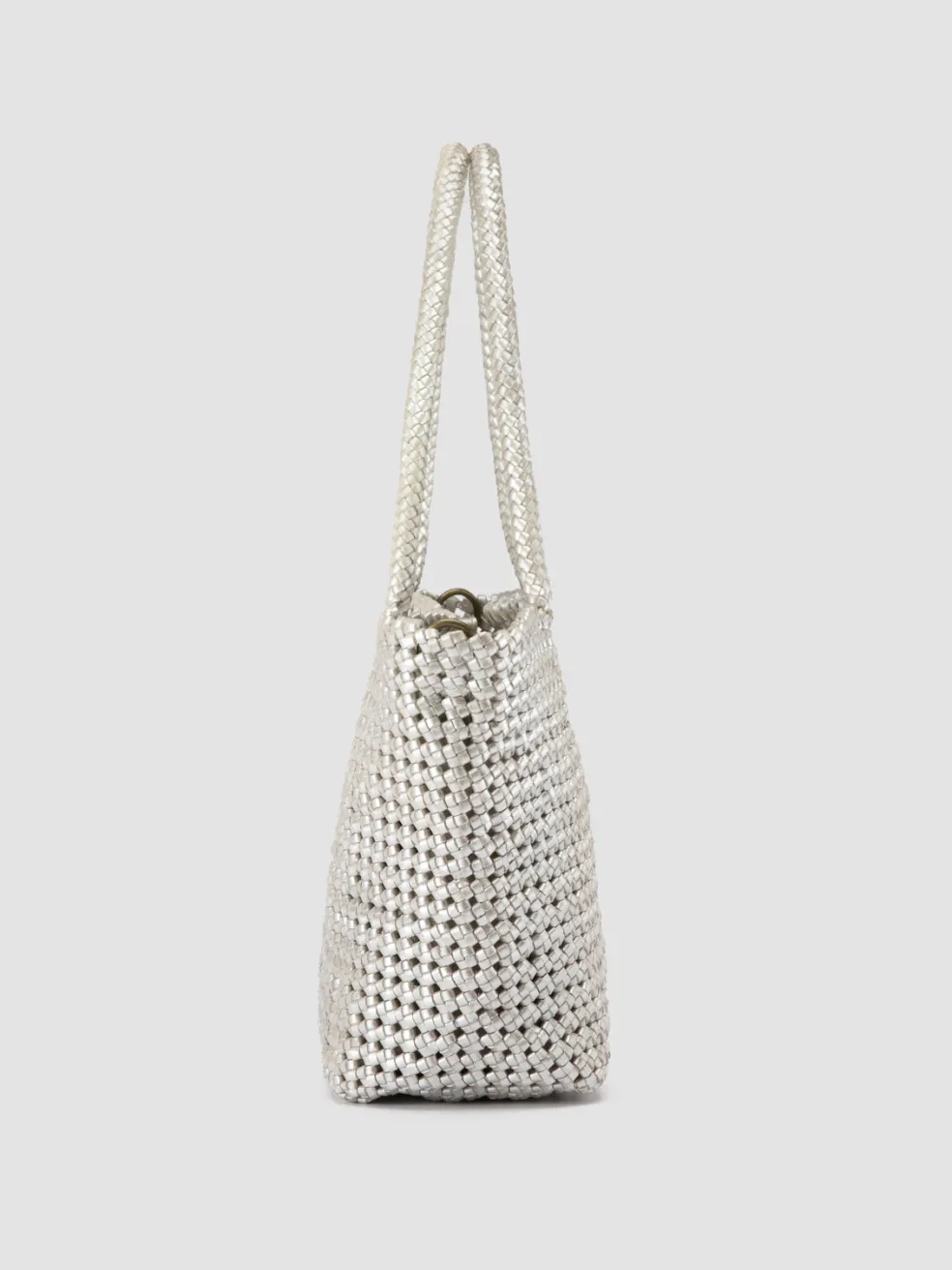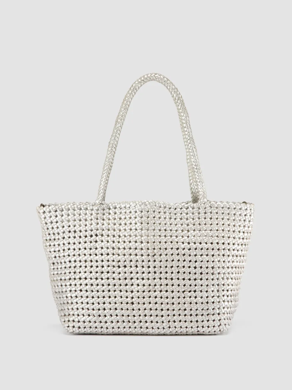 With a hand-woven leather body in a striking silver hue, the Susan 009 shoulder bag is an expression of exquisite Italian craftsmanship. It features an unlined interior that showcases the impeccable quality of the leather, complemented by a detachable shoulder strap and an internal magnetic button for a secure closure.