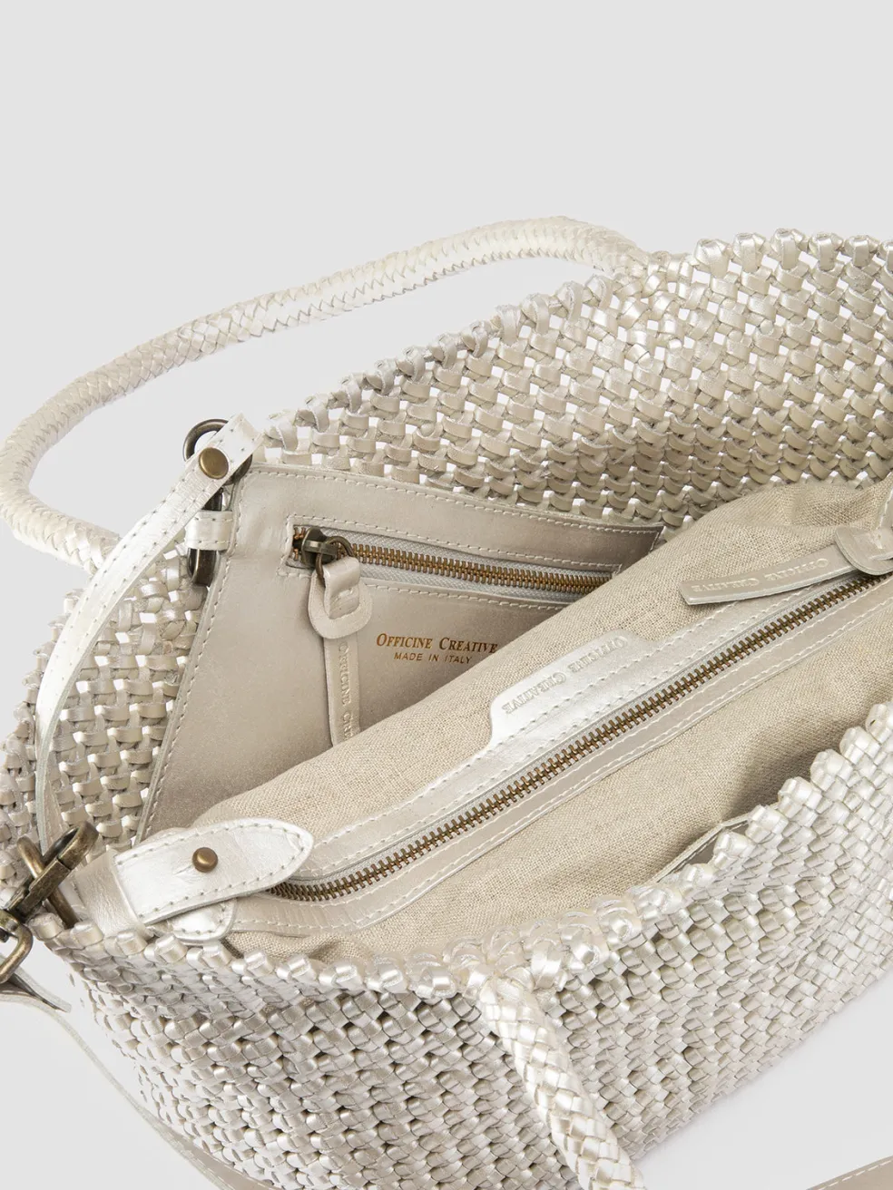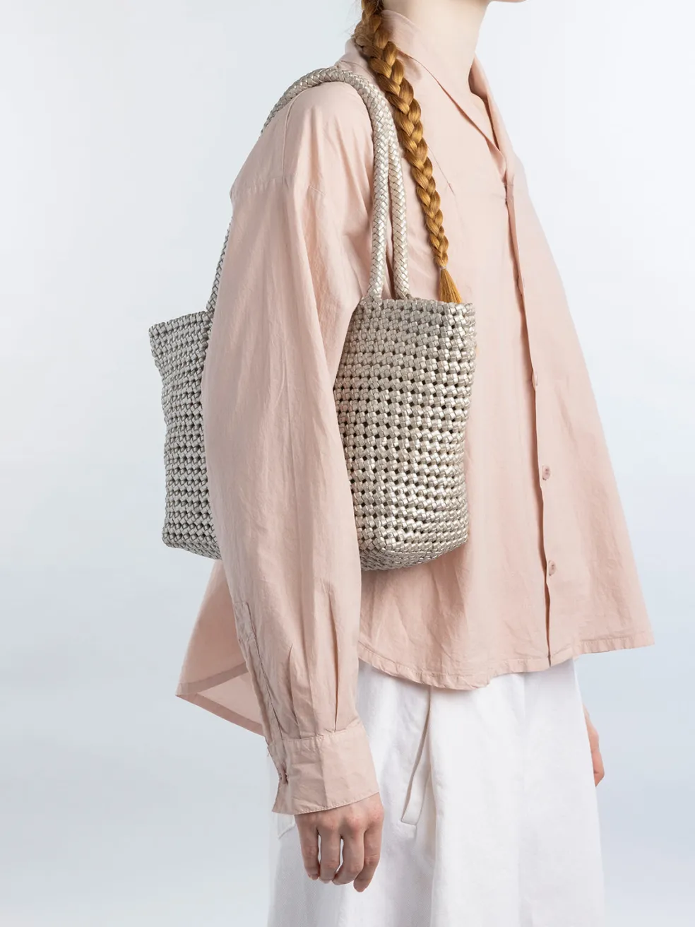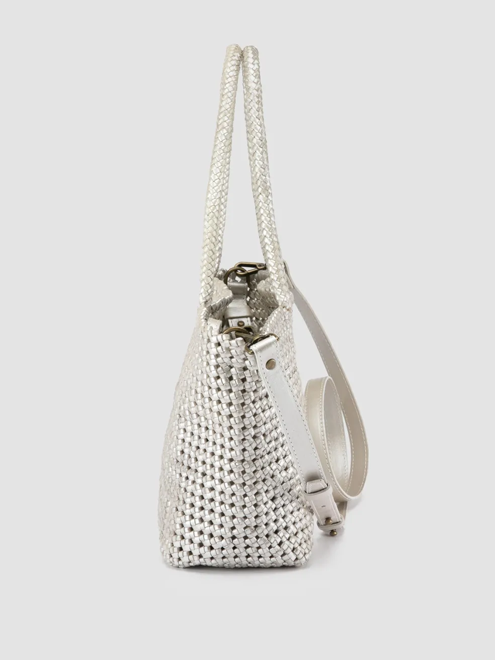 With a hand-woven leather body in a striking silver hue, the Susan 009 shoulder bag is an expression of exquisite Italian craftsmanship. It features an unlined interior that showcases the impeccable quality of the leather, complemented by a detachable shoulder strap and an internal magnetic button for a secure closure.