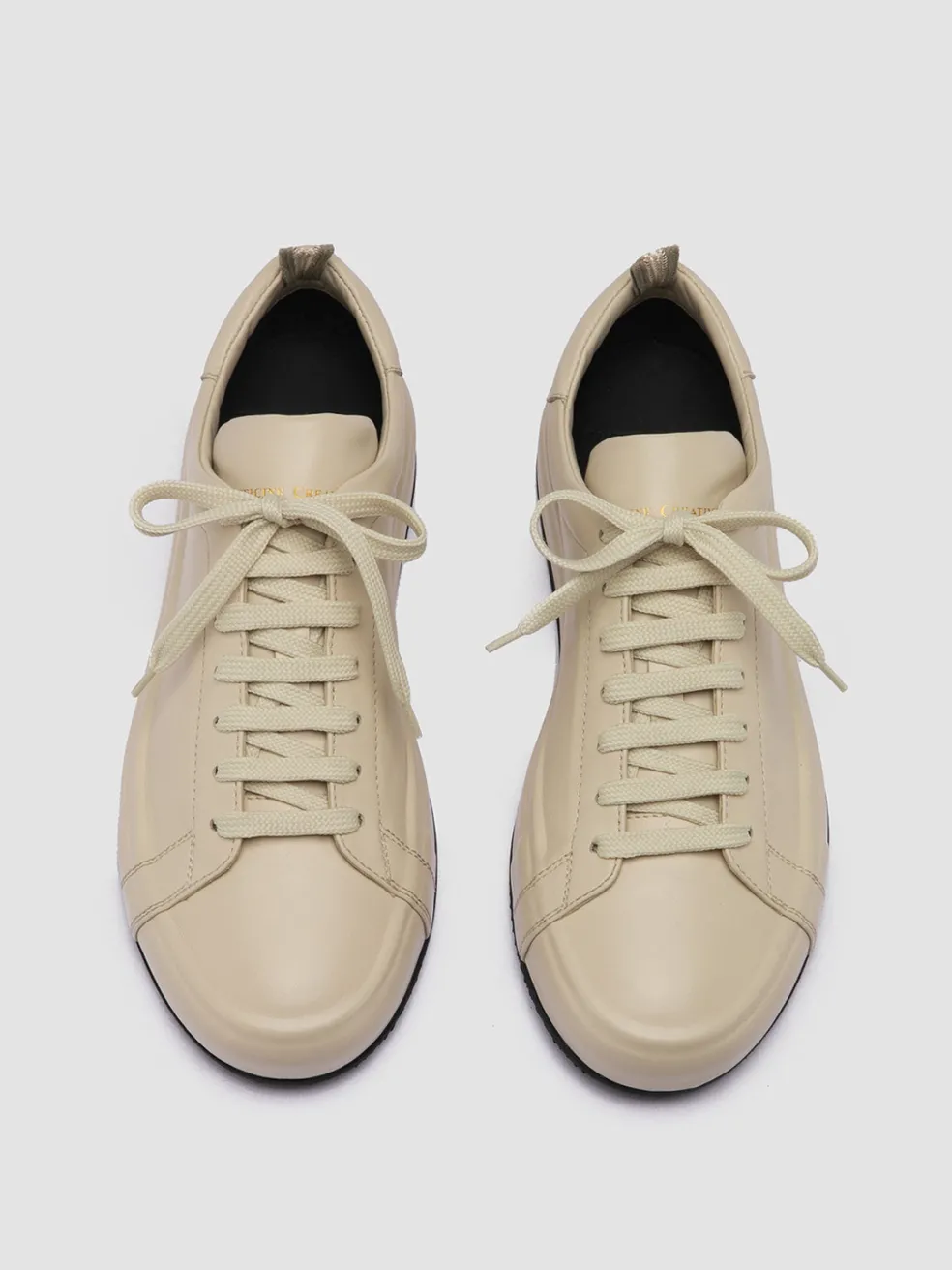 An urban statement with a distinctive Italian flair. Handcrafted in premium ivory leather, the Easy 101 sneakers feature a characteristic encased design with a clean-lined silhouette enhanced by a chunky rubber sole and the iconic grosgrain loop tab on the heel. A contemporary model for a bold look.