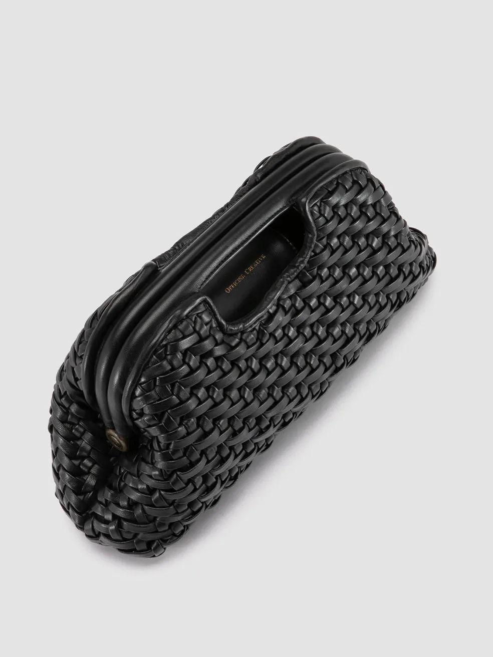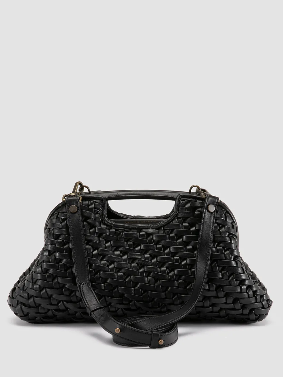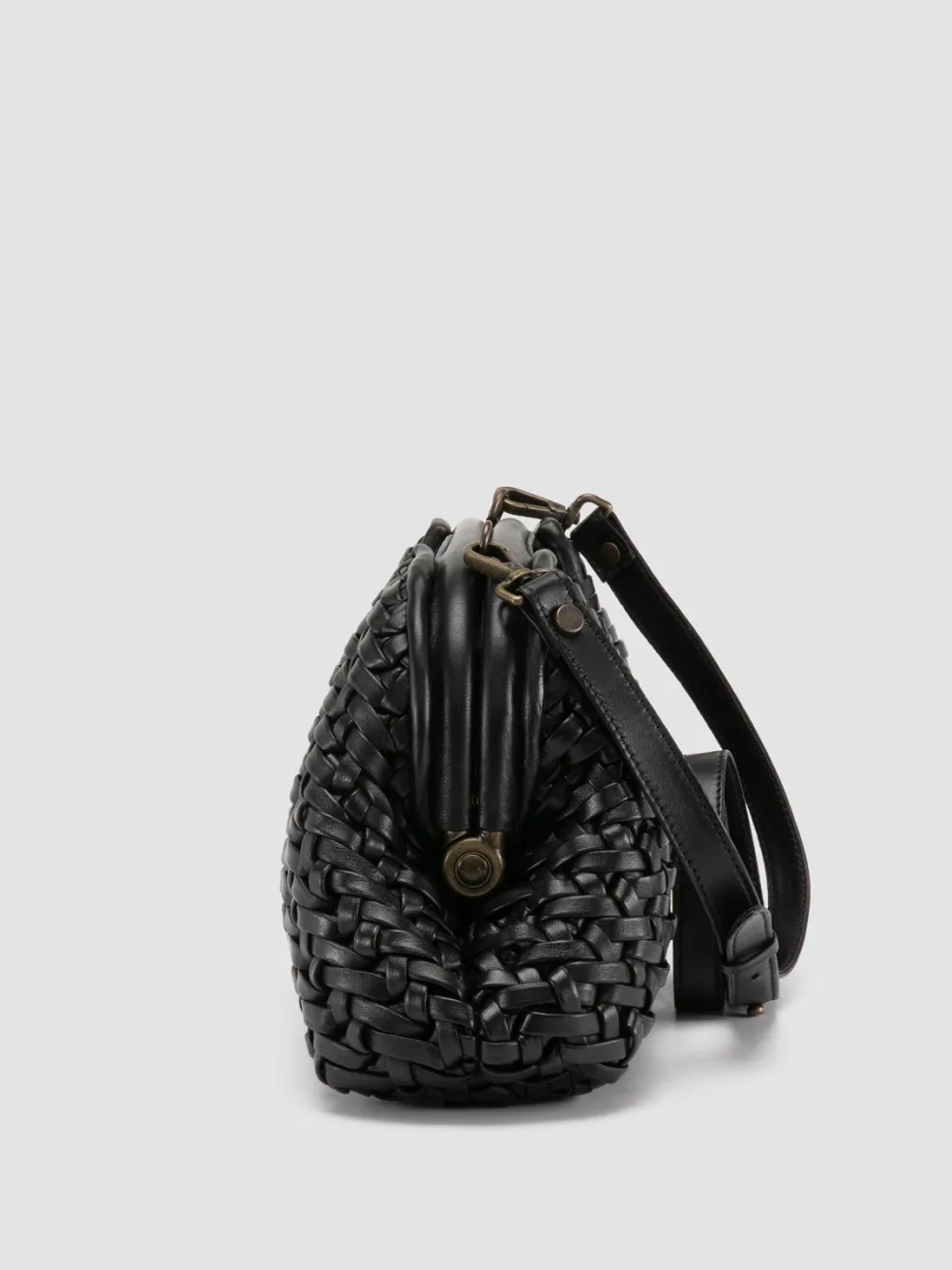 A refined and exclusive vintage-style design distinguishes our Helen medium clutch bag in fine black woven leather. Made entirely by hand by our craftsmen, it shows two rigid top handles, adjustable and detachable thin shoulder strap, fabric lining, internal panel with magnetic button fastening and embossed lettering logo, inside zip pocket and antiqued gold-tone metal hardware.