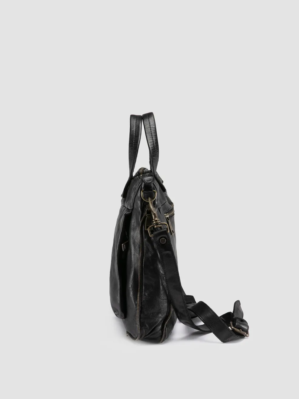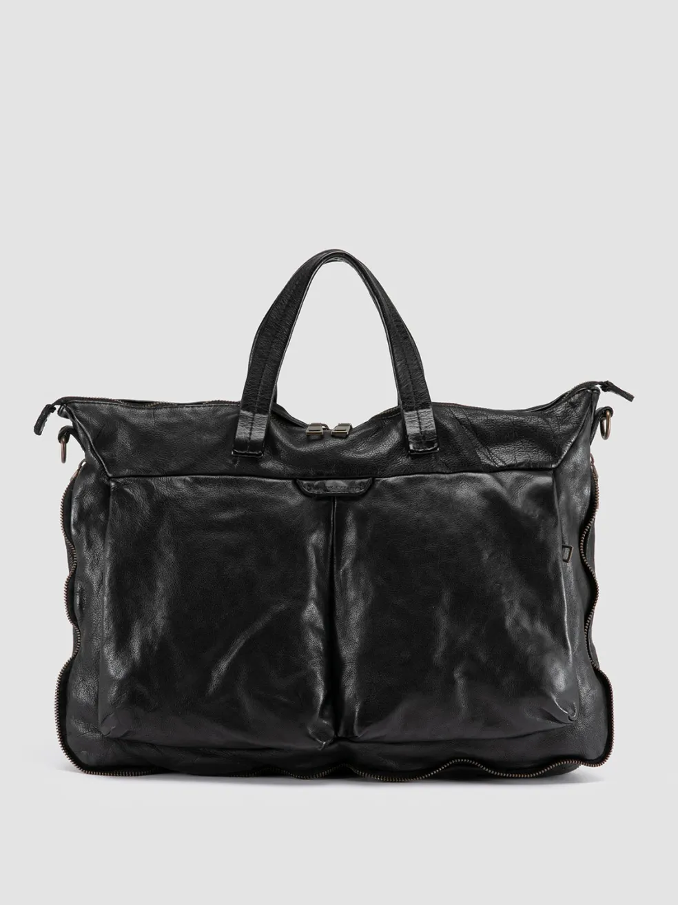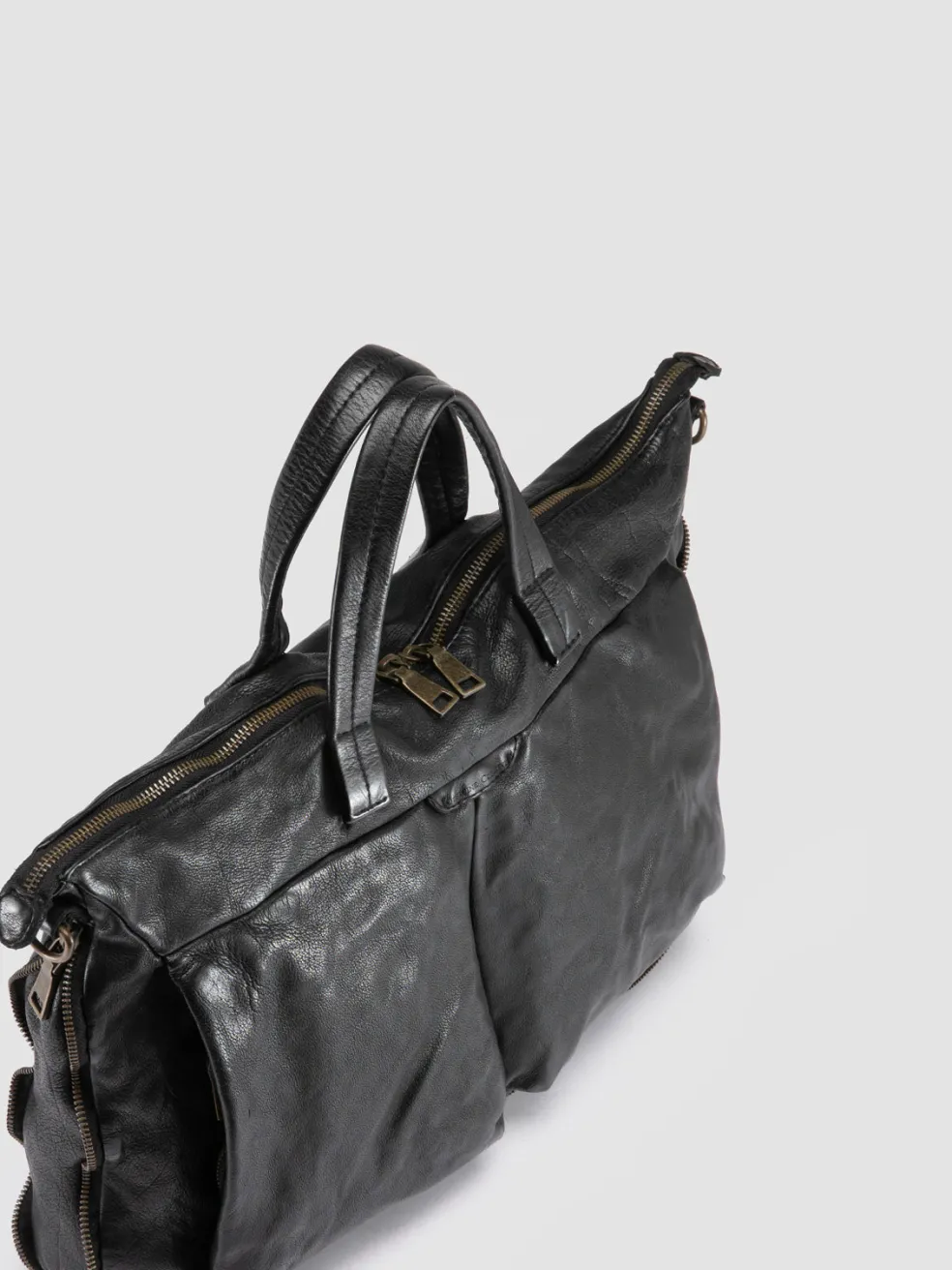 Perfect for carrying documents in style, the Helmet 046 briefcase is handmade in Italy from supple black leather. It features a minimalist, functional design with multiple compartments, top handles and a detachable strap.