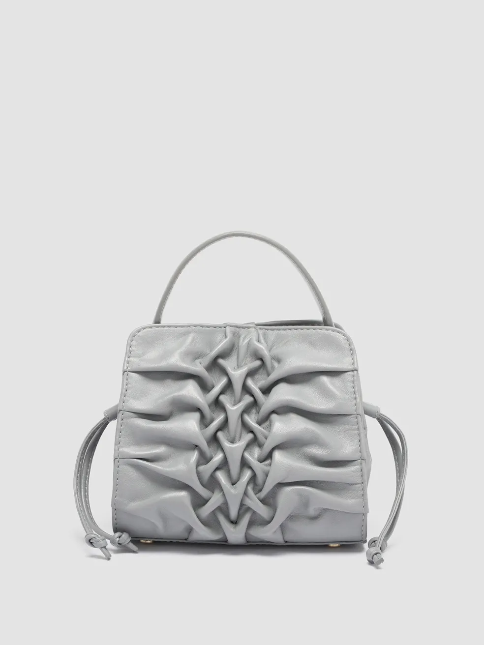 A testament to skilled Italian craftsmanship, the Hornback 004 grey model is a beautifully handwoven leather handle bag with a unique three-dimensional front panel. The compact silhouette features a structured top handle and a detachable shoulder strap.