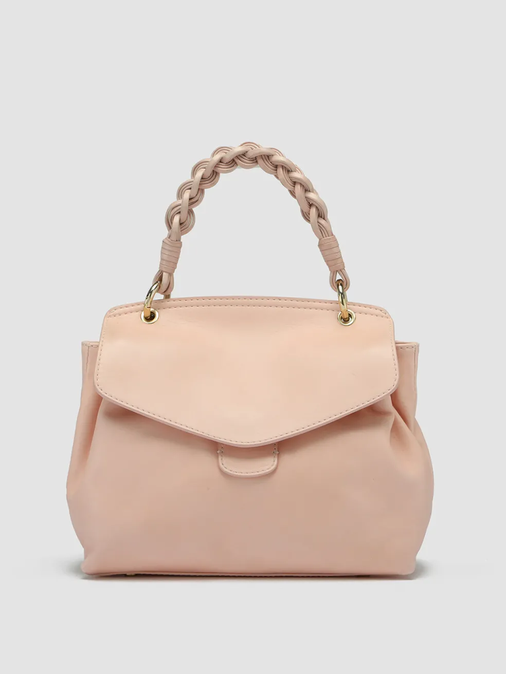 Compact and refined our Nolita bag stands out for a flawless handcrafted design with a sleek woven leather top handle. It’s made from supple rose nappa leather and features an adjustable and detachable shoulder strap concealed magnetic fastening horizontal strap that fit the size back zip pocket on which our lettering logo stands out tone on tone suede lining internal zip pocket and gold-tone metal hardware.