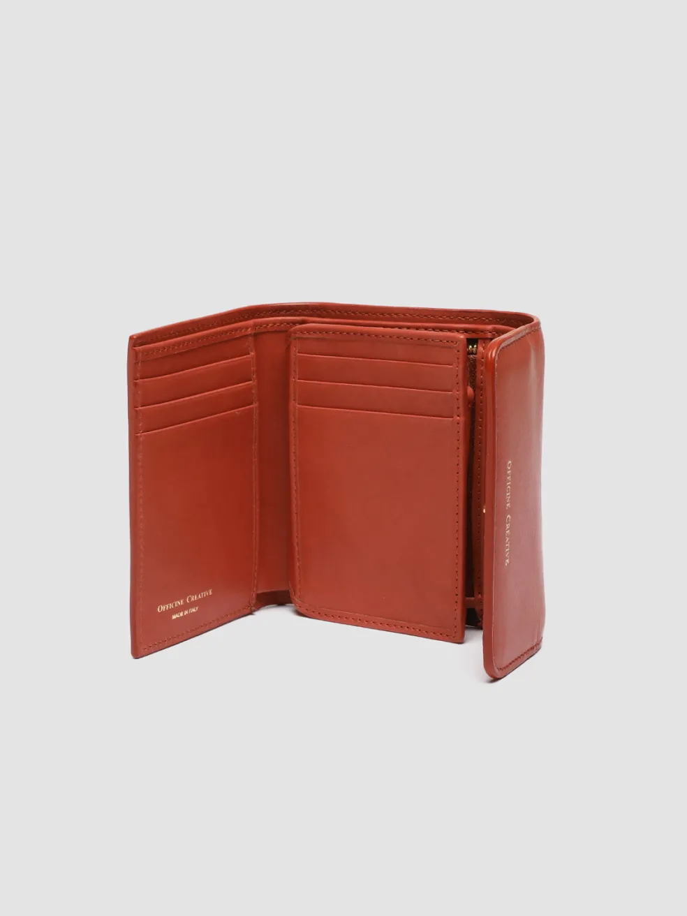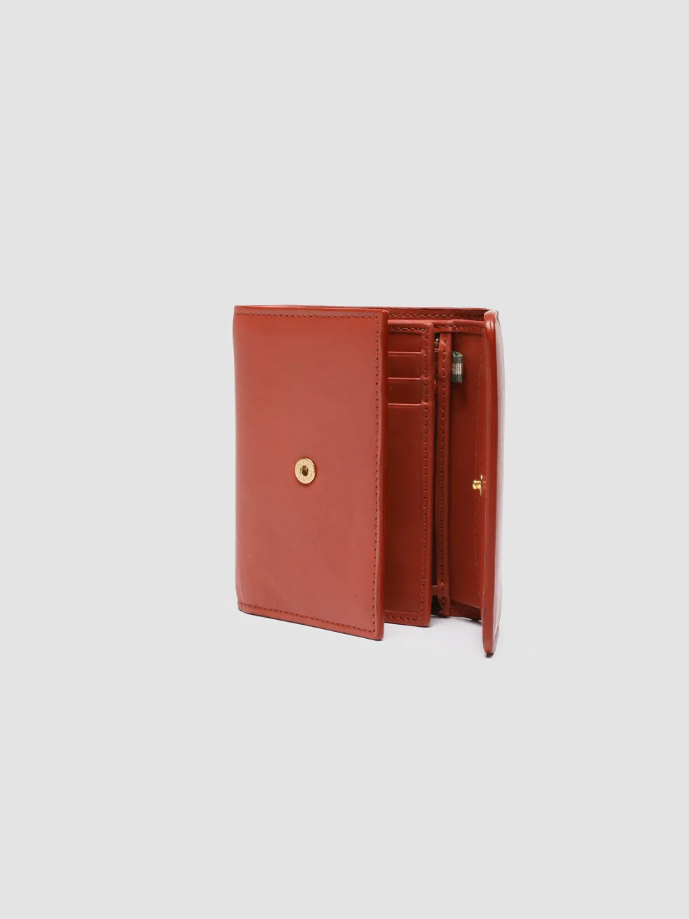 Handcrafted from premium smooth rust rose nappa leather, our Poche trifold wallet is compact, practical and stylish. It features our golden lettering logo embossed on the flap, snap button fastening, multiple bill compartments and card slots, side zip pocket and gold-tone metal hardware.