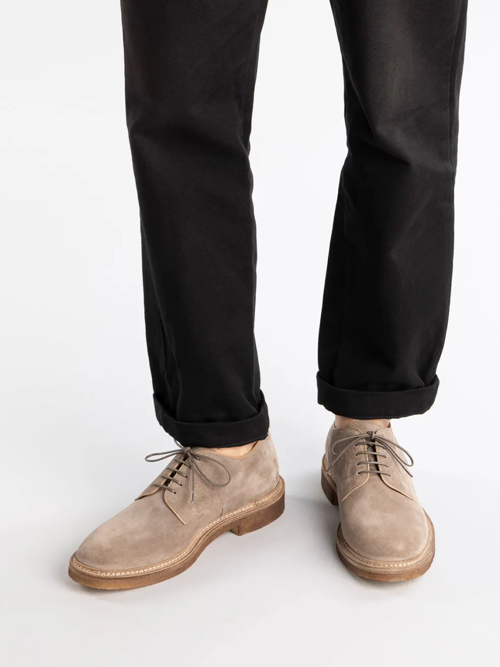 Ideal for those who value laid-back luxury and durable construction, the Hopkins Crepe 115 derby shoes perfectly embody the spirit of summer. Handcrafted in Italy from taupe suede that offers a soft touch and a suave appearance, the crepe sole adds to the lightweight feel, ensuring every step is cushioned in comfort.