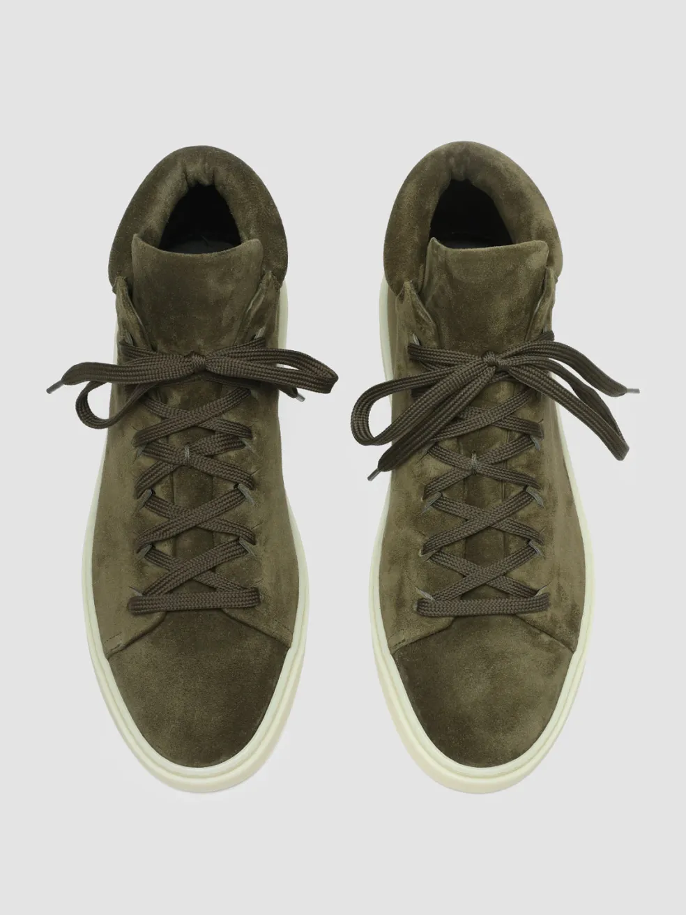 Our Muskrat 010 sneakers are set on Lactae Hevea soles that set them apart from any other style for their unique colourway and flexibility. They have supple green suede uppers and padded collars for added comfort.