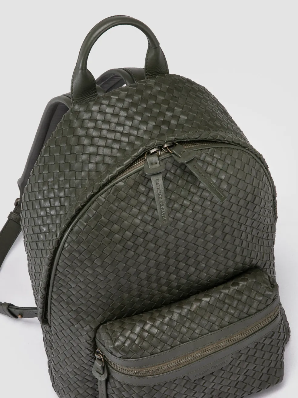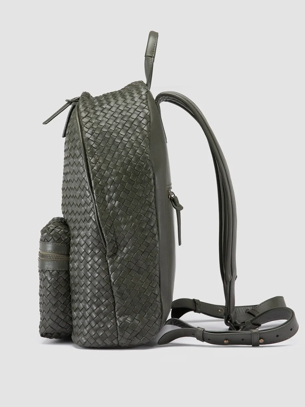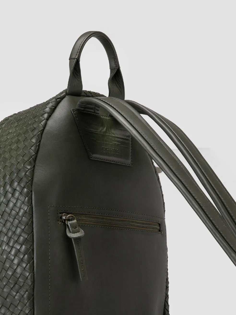 The OC Class 069 backpack combines functionality with Italian craftsmanship. Handwoven in rich green leather, it features a structured design, a spacious interior with secure zip fastenings and comfortable shoulder straps.