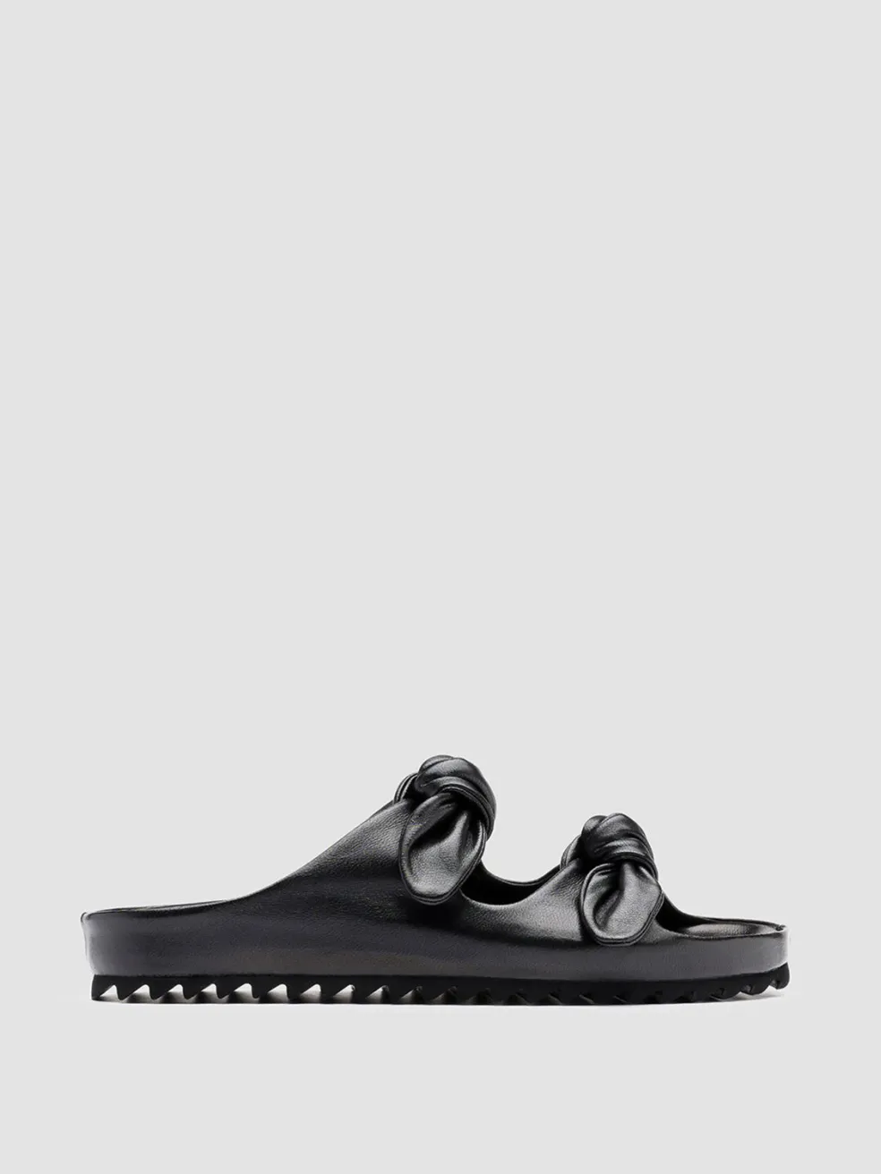 A clean, essential design and an incredible attention to detail characterize our Pelagie sandals. Handcrafted in Italy using the highest-quality vegetable tanned leather, these slides feature a rounded toe with two knot straps and a tread rubber sole, for a comfortable wear.