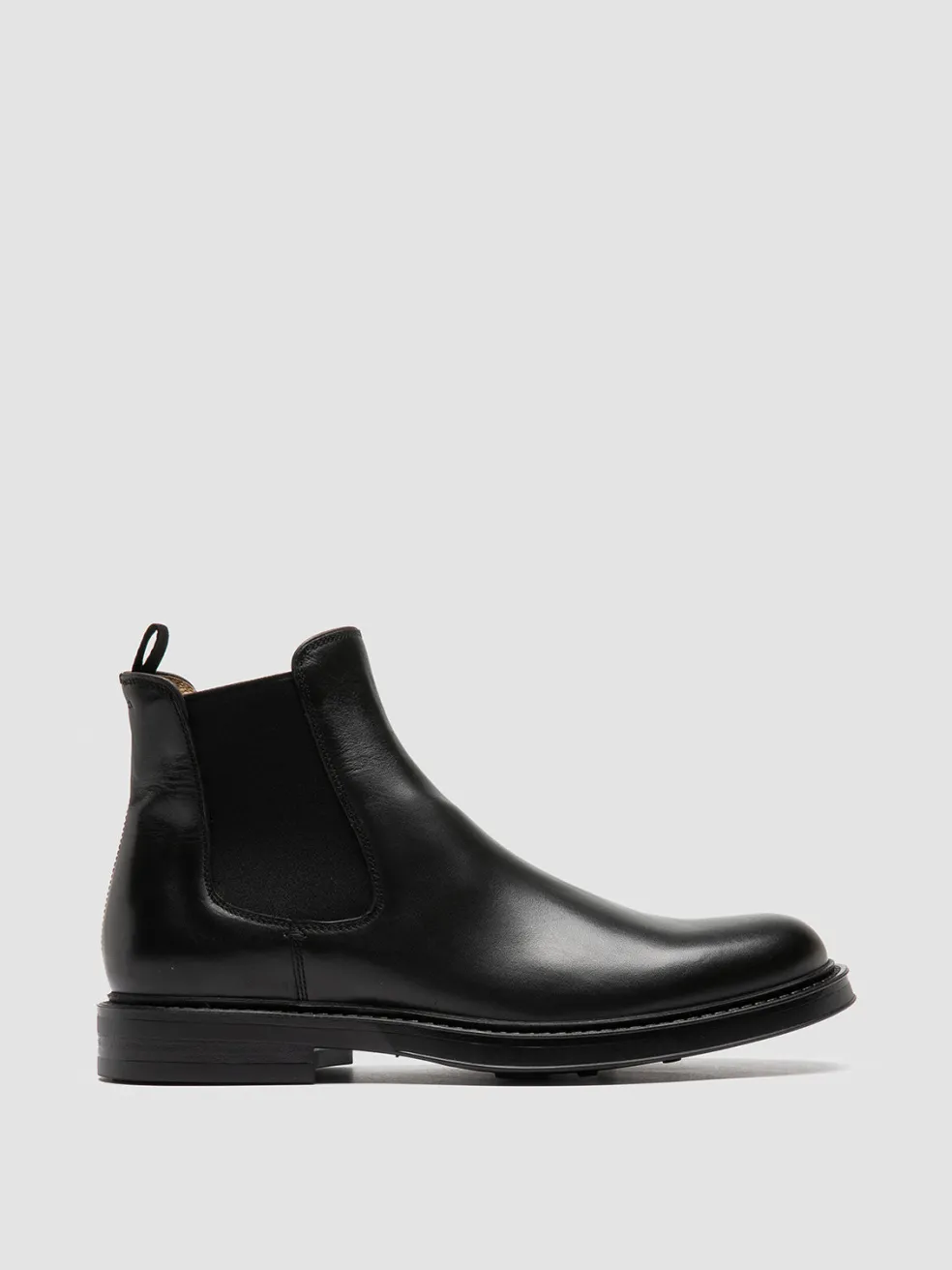 Versatile and timeless our Uniform Chelsea boots are made by our skilled craftsmen from smooth black leather. They feature a classic design with stretch side panels for a comfortable fit rounded almond toe tonal leather heel loop-tab and a durable leather and rubber sole with a grip outsole.