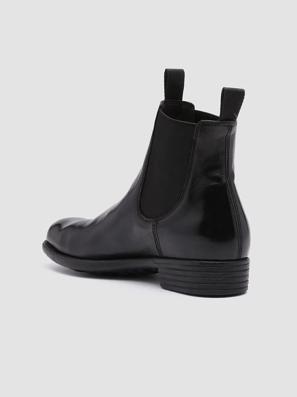 Calixte Chelsea boots perfectly combine comfort and contemporary design. Handcrafted from black fine leather they have elasticated side accents for a perfect fit two original black grosgrain pull tabs a rounded almond toe and a durable caoutchouc sole with a low stacked heel.