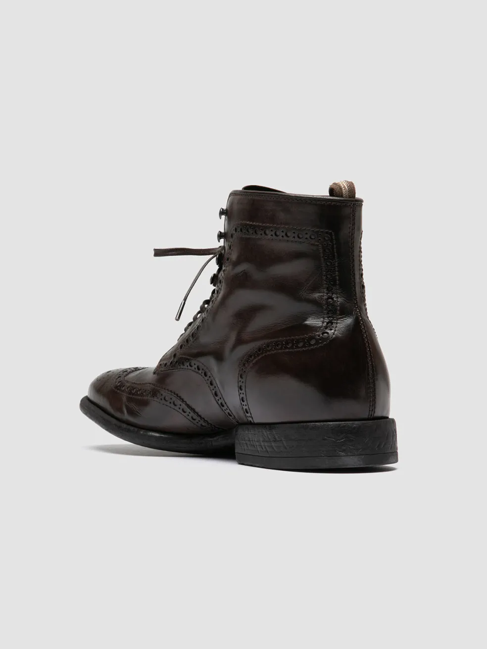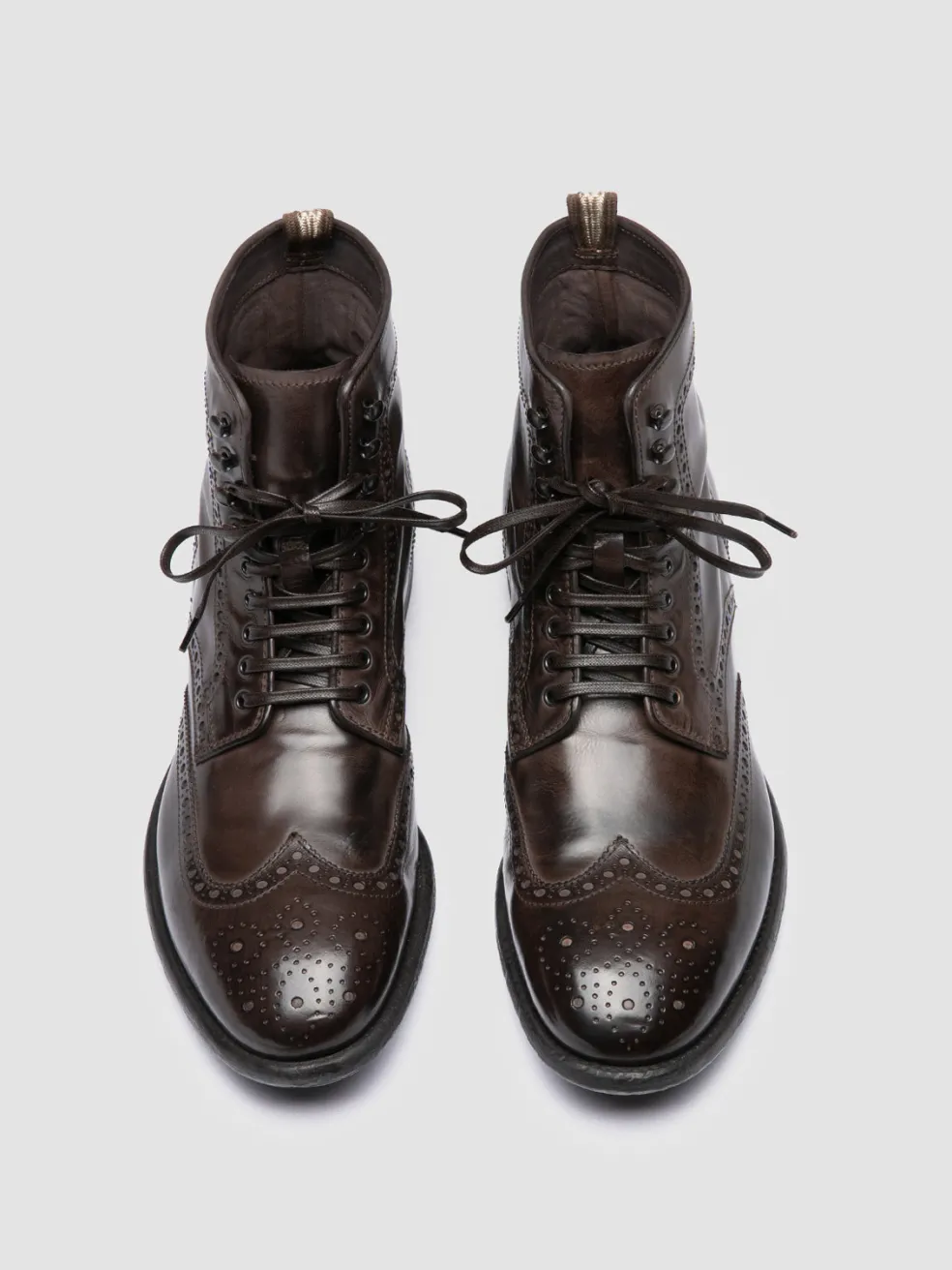 Experience Italian artisanal perfection with our Emory Caou boots handcrafted from premium leather. Featuring a rounded toe, a low-stacked heel and our signature grosgrain loop tab, their distinctive full brogue design in dark brown exudes timeless sophistication.