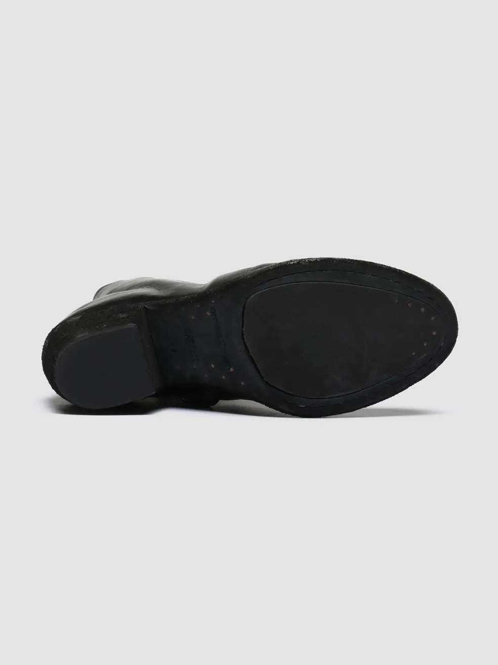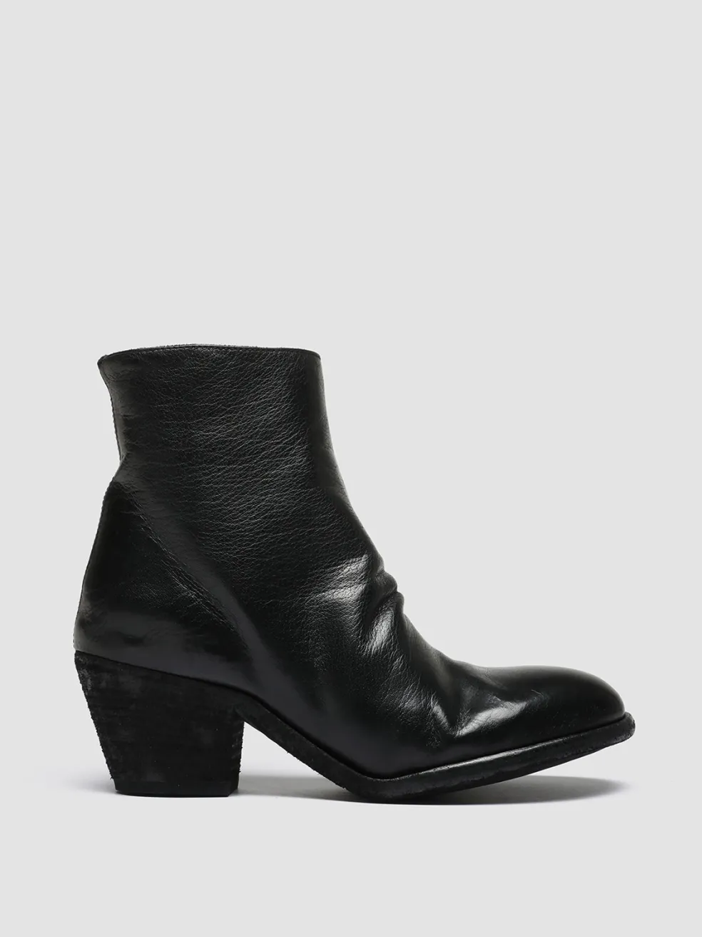 Handcrafted from supple black leather, our versatile Sherry ankle boots feature an almond toe silhouette and a Cuban-style stacked midi heel. They reveal a comfortable side zip fastening and a leather sole with rubber bottom.