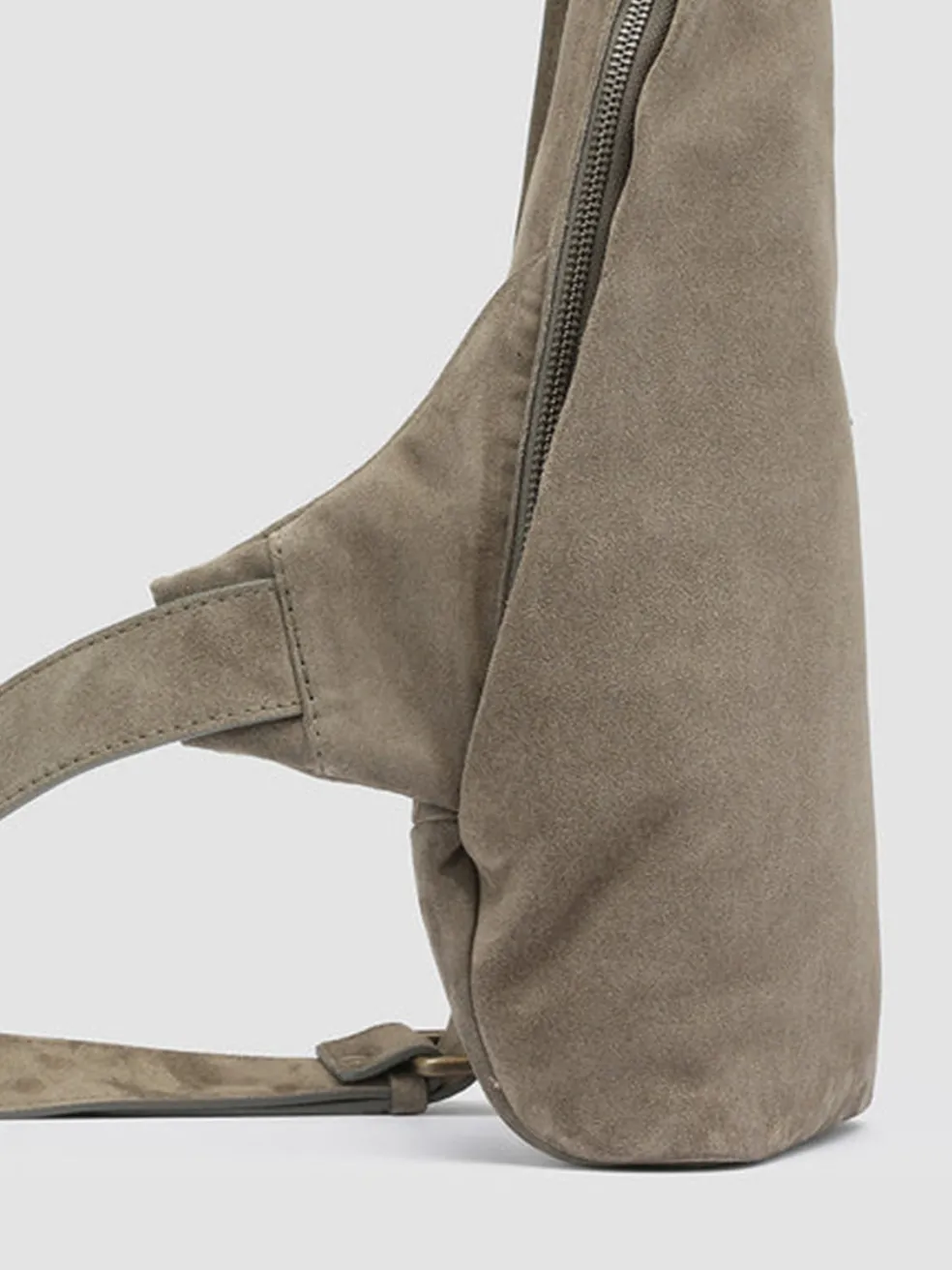 Handcrafted from soft taupe smooth premium suede our Helmet bag stands out with its contemporary triangle design. Perfect to take with you on any occasion it features an adjustable shoulder strap, a main compartment with a smart side zip fastening, and our signature front small tab with embossed logo lettering.