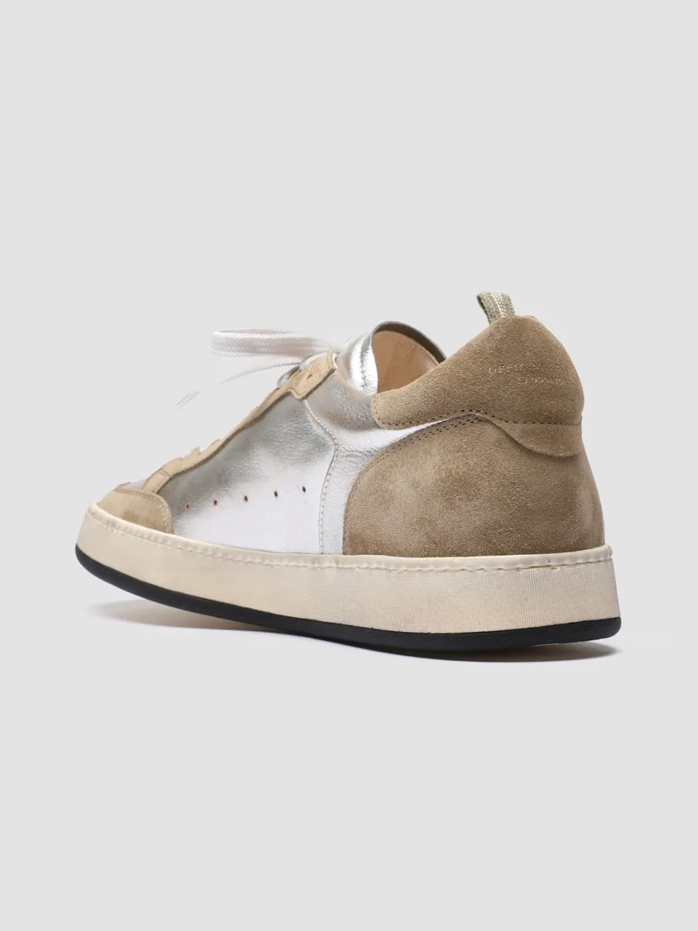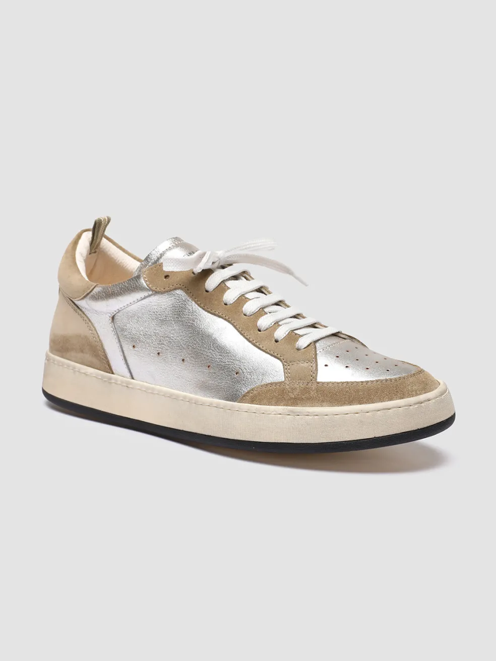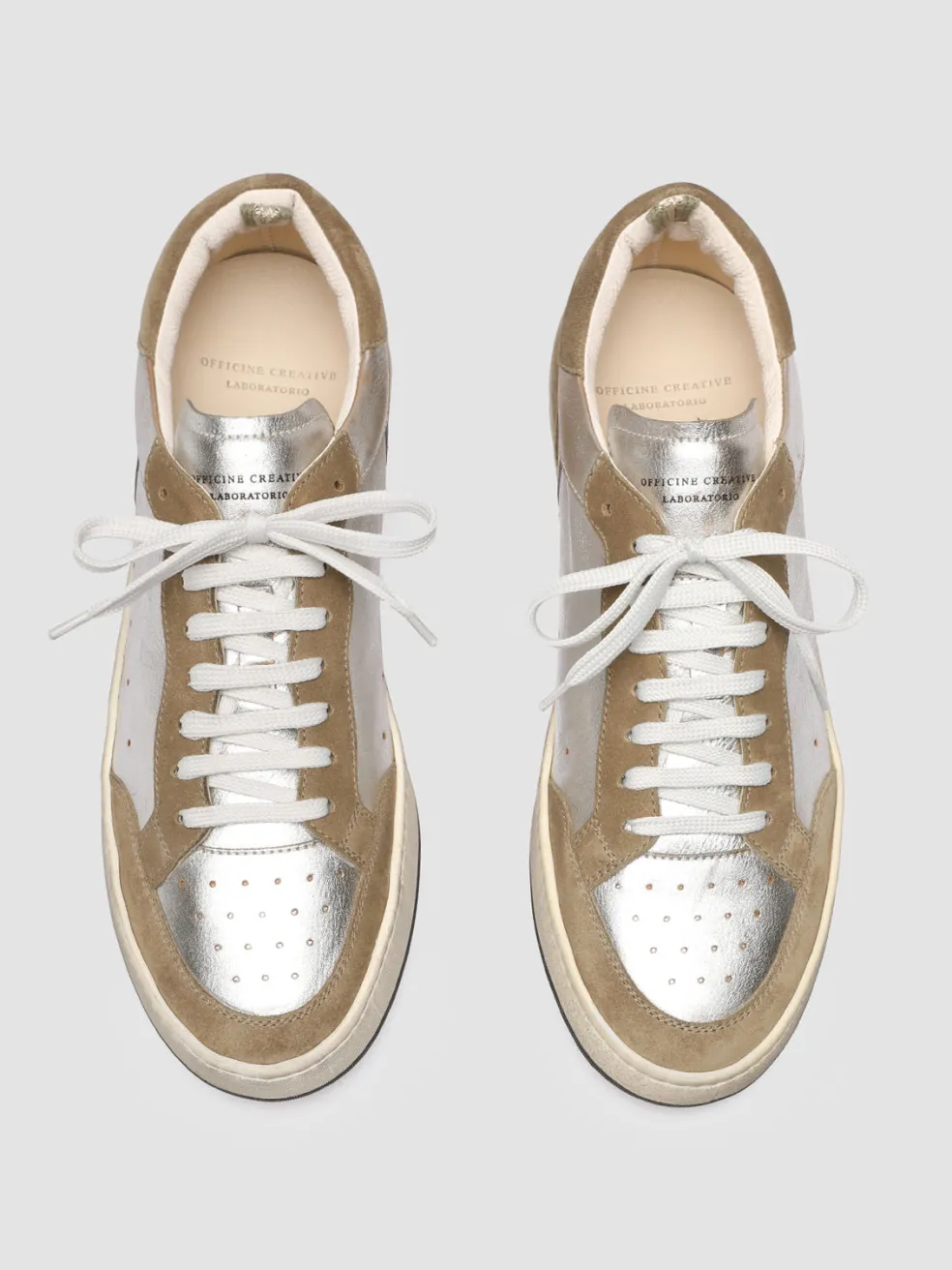 Combining a sporty silhouette with bold shades, our Magic 001 sneakers are the perfect way to make a style statement. Beige suede and silver leather uppers rest on rubber soles that guarantee flexibility and comfort.