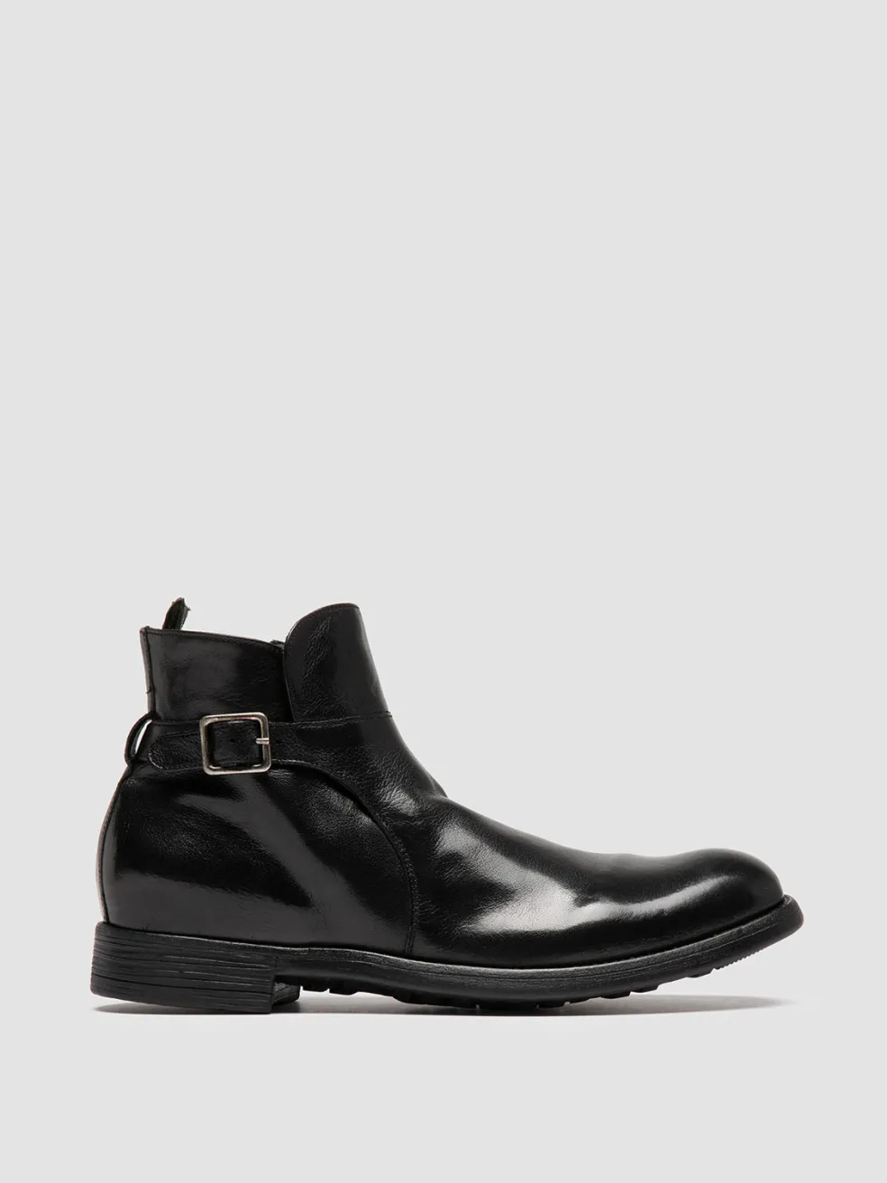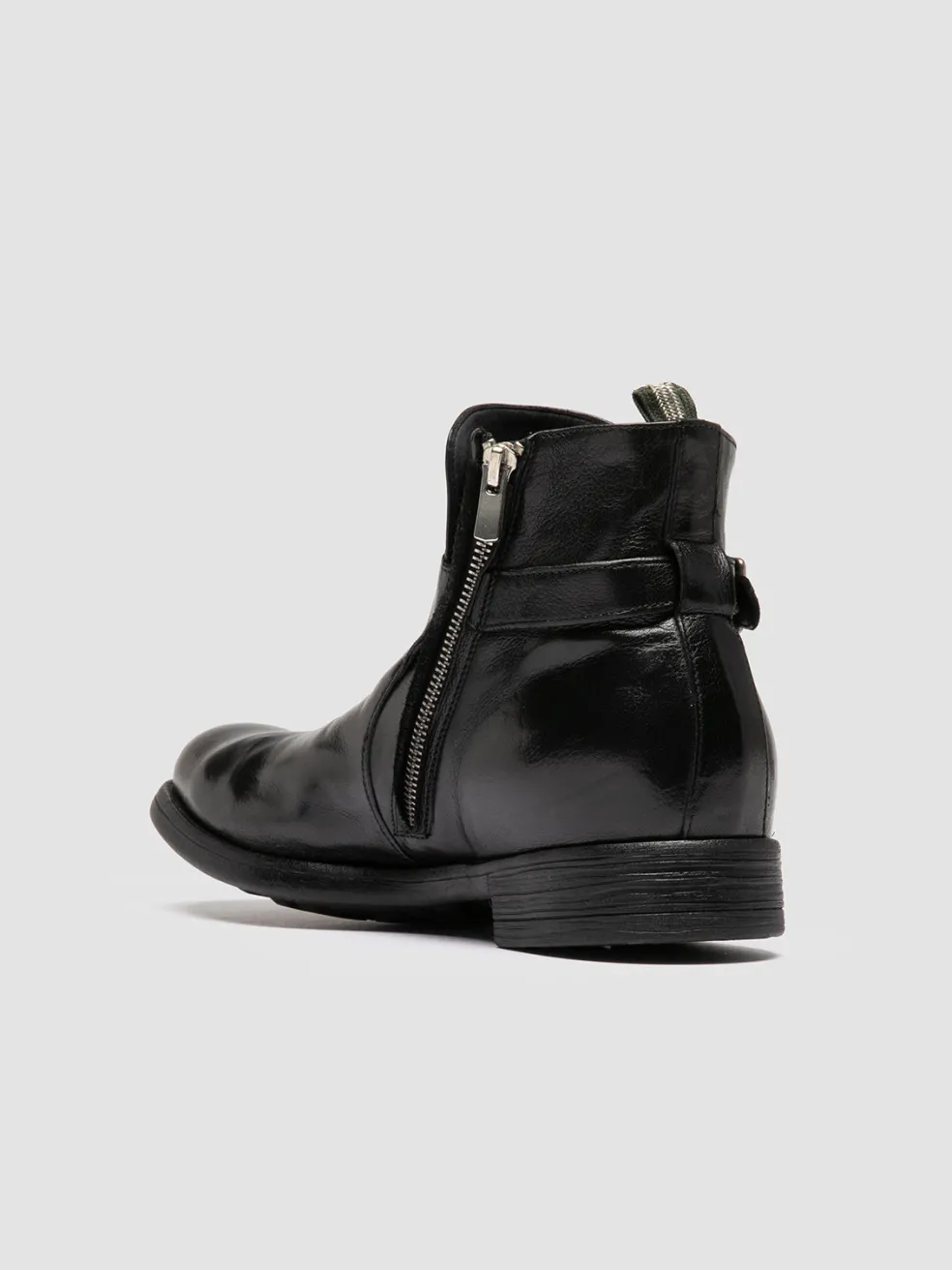 The Chronicle 068 boots are made in Italy from exquisite black leather, featuring a sleek silhouette with a side buckle, a functional zippered closure, a natural rubber sole for durability and the signature grosgrain heel pull tab.