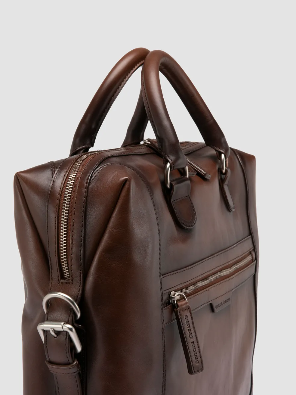 An icon of professional elegance, the Jules 003 briefcase is handmade in Italy from supple brown leather. Blending luxury and function, it features a spacious interior, zippered security, top handles and detachable strap.