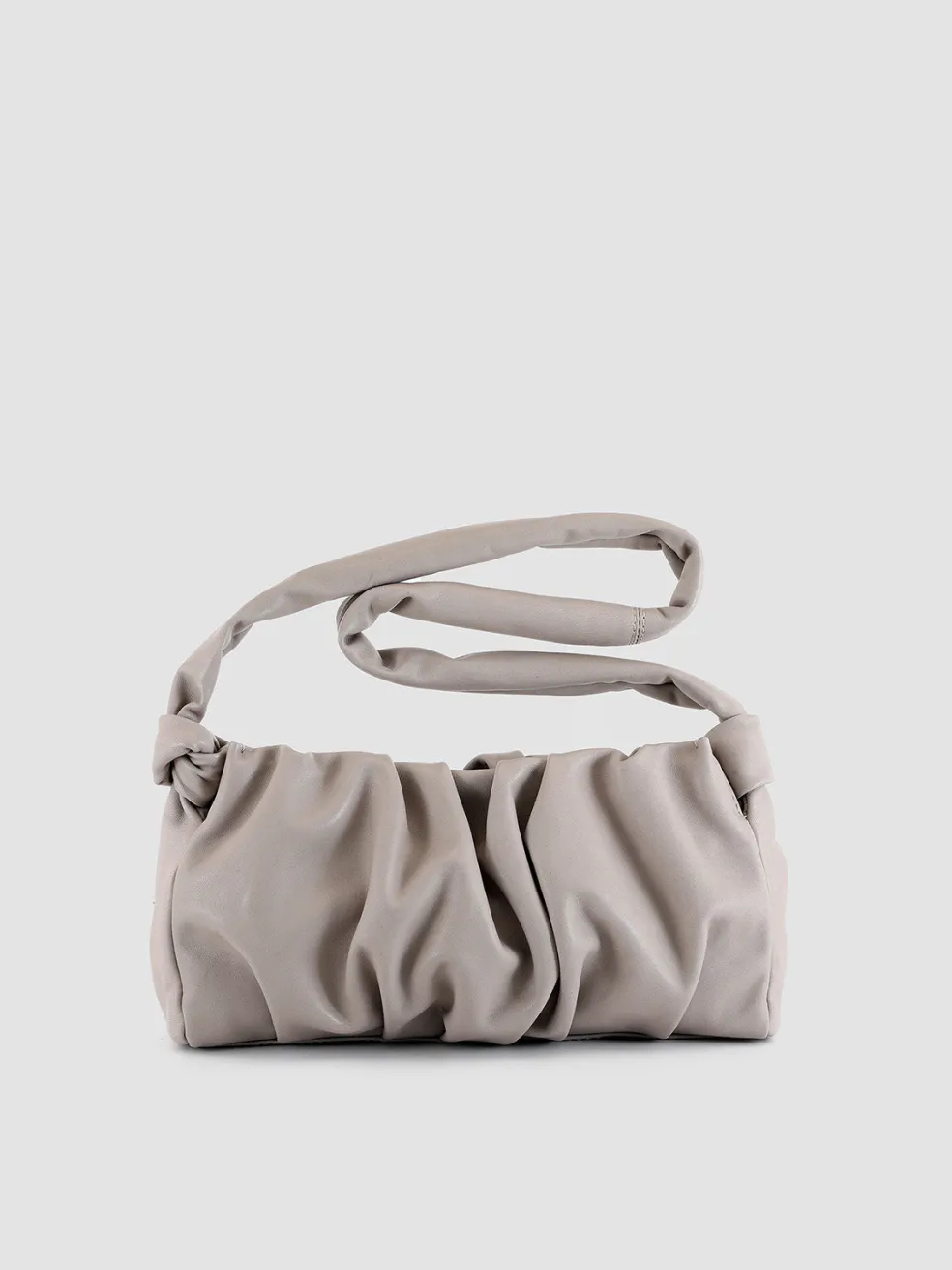 The Bolina 21 shoulder bag features supple grey leather that gracefully gathers into lush drapes along the minimal silhouette. The shoulder strap, knotted at each end, adds a unique and relaxed appeal to the bag’s distinctive look.