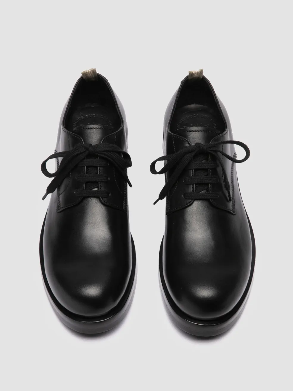 Emanating a contemporary yet gothic charm, the Bulla 001 derby shoes are expertly handcrafted in Italy from premium black leather, featuring a durable rubber-injected sole for enduring elegance and robust functionality.