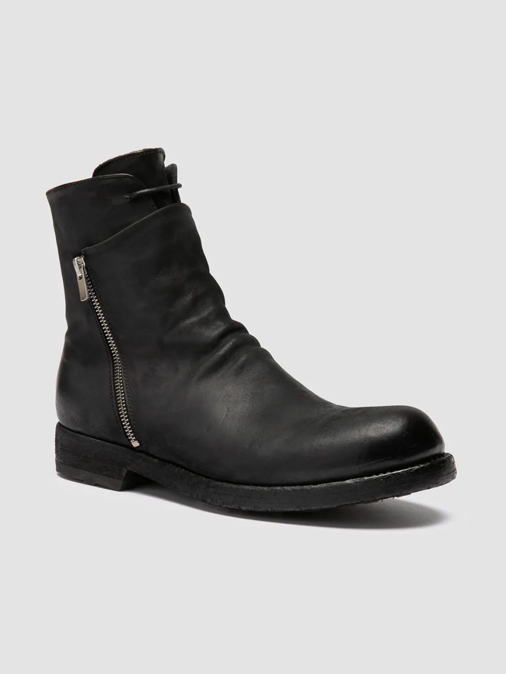 Enduring design and modern refinement characterise the Bulla DD 106 boots. Handmade in Italy from deep-dyed black leather, they boast a sleek profile, a functional zipped closure and a sturdy rubber-injected leather sole.