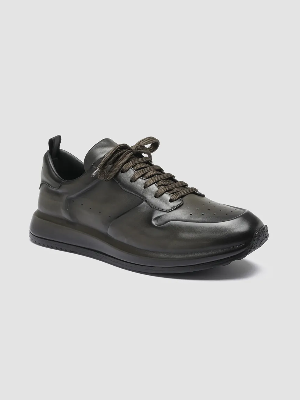 The airbrushed finish in shades of dark green adds a luxurious and unique touch to our iconic Race Lux artisan sneakers. They are handcrafted from fine and soft nappa leather and feature an original built-in sole design breathable perforations logo lettering embossed at the tongue and at the back patch tone-on-tone heel grosgrain pull tab and black tread rubber outsole.