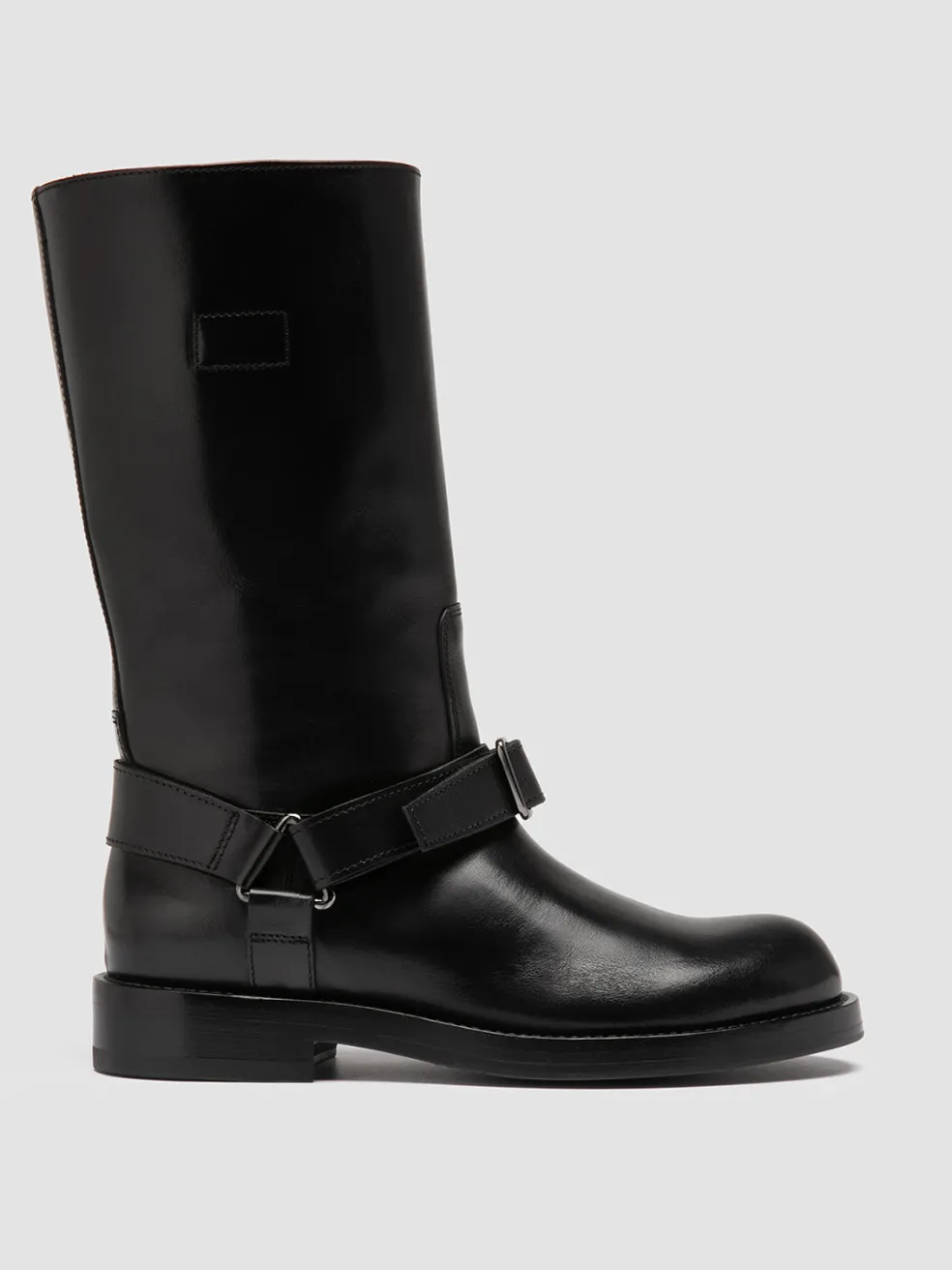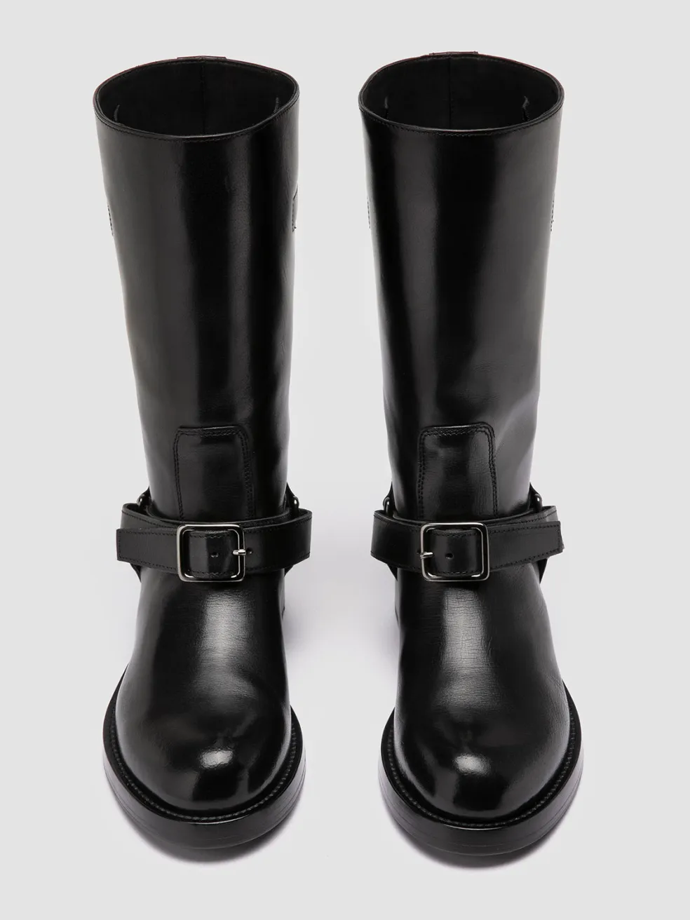 Meticulously handcrafted in Italy from genuine leather, the Beryl 001 pull-on boots in black exude sturdy sophistication, featuring a riding-style monolithic silhouette and double-injection rubber sole with a low-stacked heel.