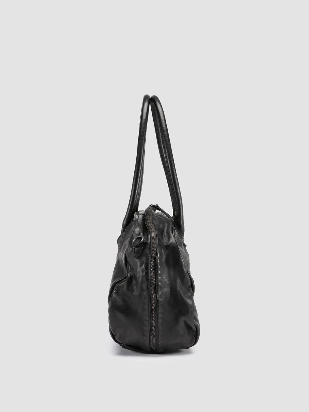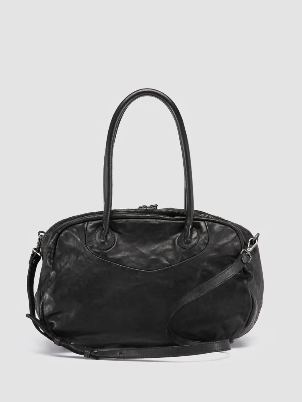 Handcrafted in Italy from premium black leather for a sleek look, the Blower 001 bag is a nod to the classic bowler model. A statement accessory with a spacious interior, featuring two top handles and a detachable shoulder strap.