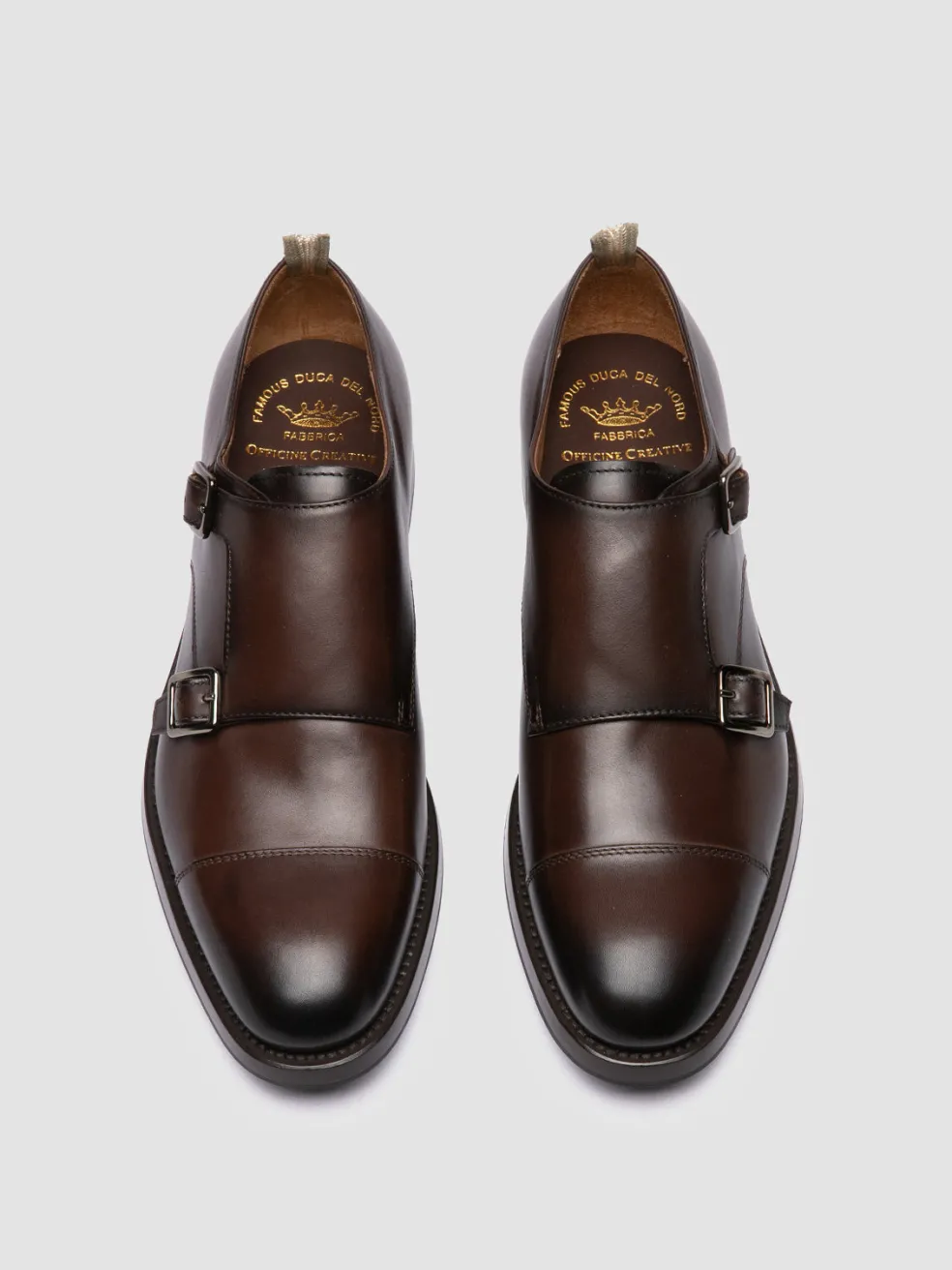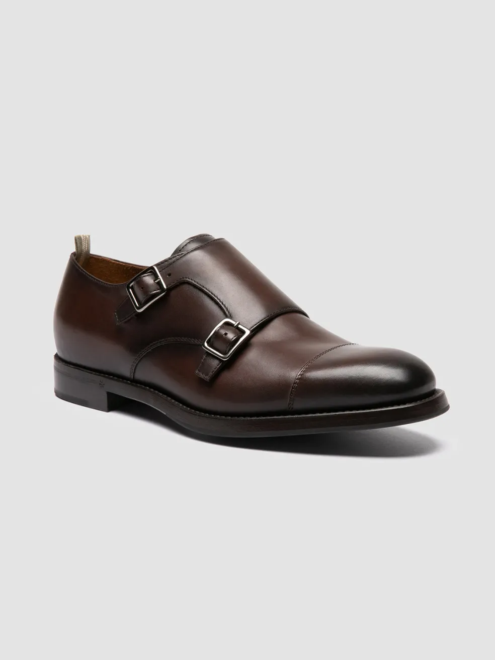 The Consultant 004 shoes are handcrafted in Italy from brown leather with a deep airbrushed finish. The double monk strap adds a touch of timeless appeal to the design while the rubber-injected sole ensures durability.