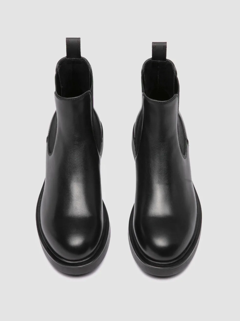 Sleek versatility and contemporary class mix in the Engineer 107. Handcrafted in Italy, these black leather Chelsea boots have a snug, elasticated fit and a clean design set on a sturdy rubber sole for excellent grip and durability.