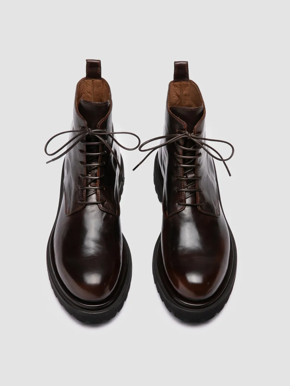 The Eventual DD 102 boots are a contemporary nod to the ’90s style. Handmade in Italy from rich brown leather, they feature a classic lace-up front with an airbrushed finish and a light EVA slug sole for all-day wearability.