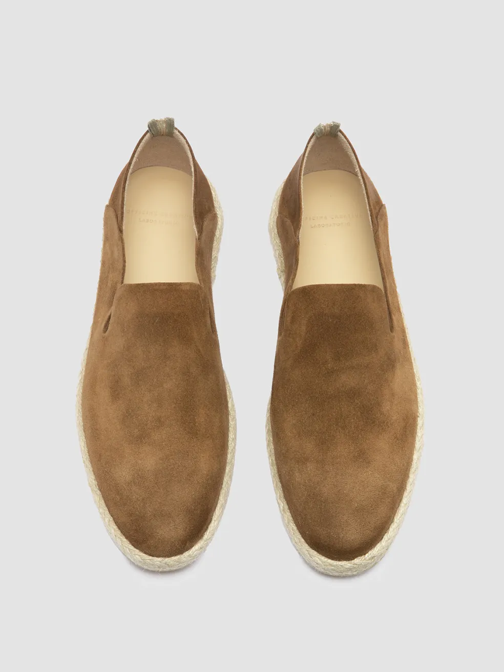 Our comfortable Roped slip ons can also be worn as slippers thanks to the foldable back panel. They are handcrafted from brown plush suede and feature a rounded toe design signature grosgrain heel loop and a woven raffia sole and crepe rubber outsole.